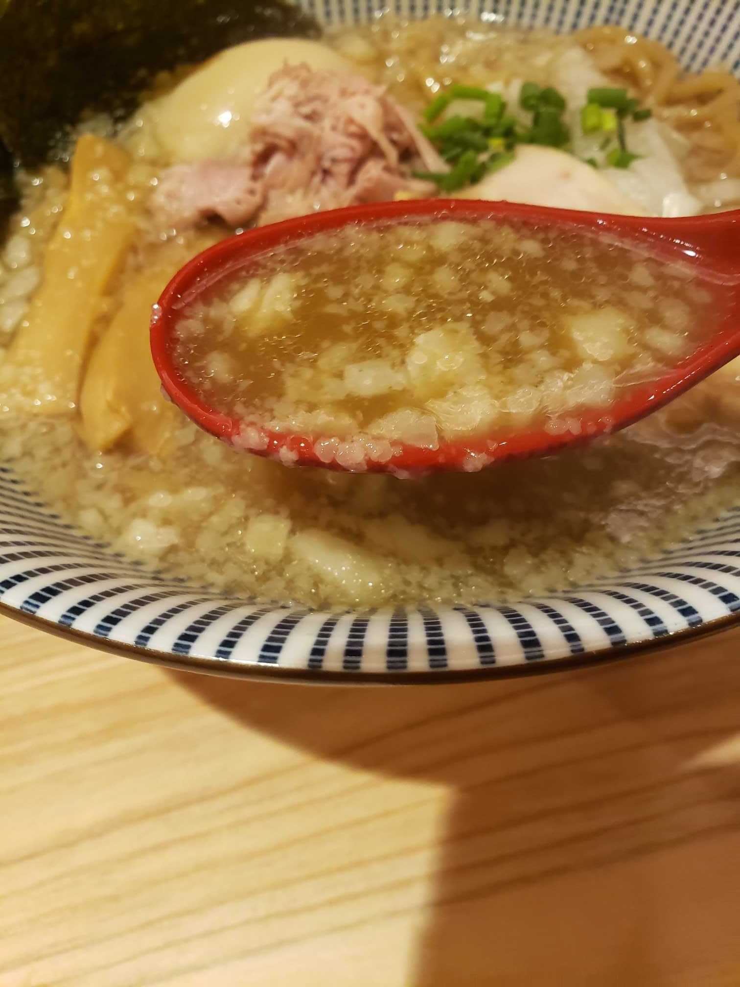 まずはスープ。う~ん・・・、塩っ辛い。実は姫路西部のお店に行った時も、この塩っ辛さに苦労した。関西人にウケるかなぁ。