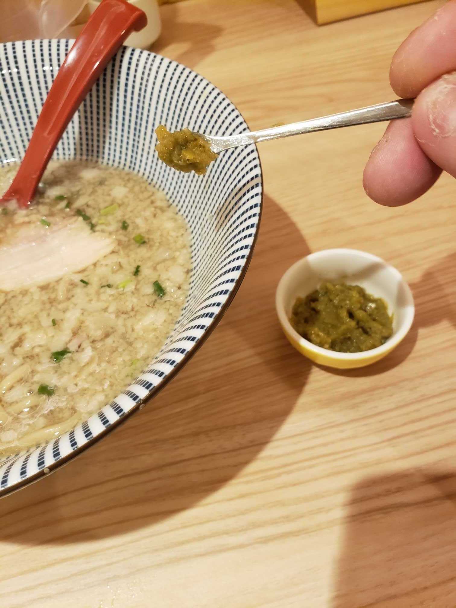 残り3分の1で味変へ。柚子胡椒投入。ちょっとまろやかになった。