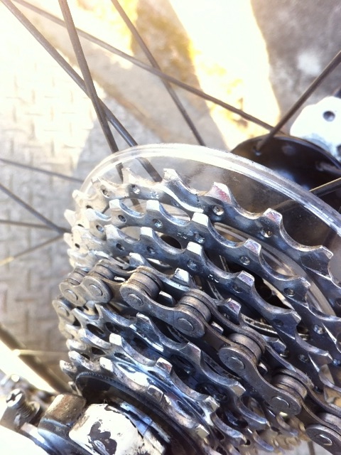 自転車屋さんにもってったらギヤの滑りだそうな。リアのギヤ、スプロケットが摩耗していて、ペダルを強く踏み込むとチェーンが一コマずれるんだ。リヤのギヤを中古のものに交換してもらってバッチリ快調!そもそも、ギヤ滑りの原因を聞いてみると以前まで使っていたチェーンが問題だった。メンテナンスをサッパリしてなかったもので、チェーンが伸び切っていた。その状態が長かったもので、ギヤが摩耗してしまっていたようだ。ギヤを交換してもらったら、ペダルをこいだ感じがカチッとなった。結論!メンテナンス第一!