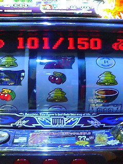 <前回のあらずじ> マイホの設定6を70台投入の激アツイベント に朝一から挑んだおいら。 沖スロのモーニングを狙うもことごとくスカッシュし、 途方にくれてながらアラジン2を打ち始めると、 なんと2Kでボーナスゲット。 その後すぐにチャンス目から高確ショートに移行し、 これは設定6では・・・と思うも転落後に単チェを 2回スカッシュ。 さて、こいつの設定はいかに・・・ なんか、単チェスカった割りにはラクダ解除。 とりあえずもう少し様子見れそうだからよかった かな。 さらに勝負を続行すると、今度はリプ×4(ヤリオッタ からボーナス解除。 なんだかなぁ、よくわからん、と思っていると ボーナス消化後100Gほどで単チェ即解除! ってかさ、即解除は今日2回目なんだけど、 即解除って選択率えらい低いよね。 なんでそんな薄いとこひくんさ。 即解除ということもありこれは単発。 でもなぁ、追加投資もしてないし、流れだけは異常にいい。 とりあえずもう一回単チェ引くまで粘りますか。 と思った矢先の50Gで単チェゲット☆ そこからチャンス目が連発! キタキタキタァー(麻雀物語風 って思ってたらやはりチャンス目からボーナス解除! これが高確ショートに乗り5連! なんとそこからは400G以上のハマリが無く、 又、単チェがスカることもなく、 高確ショートの雨あられ♪ これこれ、これが6の理想的な出方だよね。 さて、朝一設定6告知の台はというと・・・ 朝2箱出てからダラダラで最終的に1箱飲まれてます。 あきらめて打ってた人は退散。 最後の高確ロングが終了した時点で、出玉の計算をしたところ約8500枚。 スロ暦8年のおいらは一度も万枚出したことありません。 今日こそはと思ったけどここまでの調子のよさと、 別の台のハマリっぷりを目のあたりにして、ここで退散。 あと1500枚はきついよね、まぁ微妙なとこだけど。 高確ロングがもうちょっと伸びてたらなぁ。 なんて思ってコインを流したらびっくり! ↓ これならねばっときゃよかったかな? まぁ、久々の大勝とアラジンA以来の9000枚over だったので良しとしましょう。 ちなみにおいらが打っていた台はおいらが止めた瞬間 におっちゃんが座りました。 翌日見に行ったら、ボーナス回数が伸びてなかったので止め時 は正解だったみたい。 <結果> めんそーれ 設定? 投資 3K 回収 0K ゴールデンZ 設定? 投資 6K 回収 0K アラジン2 設定6 投資 2K 回収 157K total 投資11K 回収157K