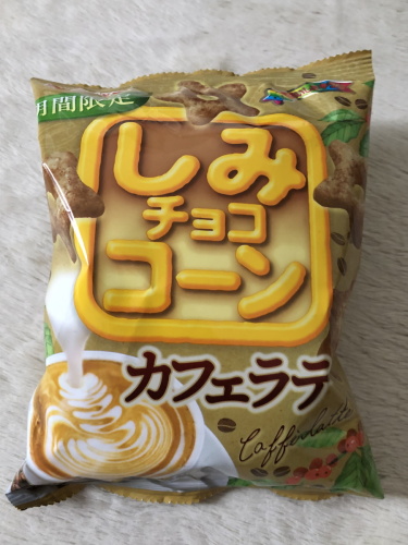 ギンビス しみチョココーンカフェラテ 期間限定期間限定カフェラテを見つけたので食べてみることにしたけどこの感じのだとカフェラテの味も想像したとおりだけど適度なサイズでさっくりとがいつも通り染み込ませたカフェラテチョコの味はカフェラテの風味と甘さのバランスも食べやすくてよい感じかな全体の内容量がちょっと足りなくてもう少し食べたいって感じがする普通のもいいけどこっちもいいな5点中 3.9点