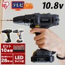 \目玉価格!/【Newカラー登場☆】電動ドライバー 小型 10.8V<br> ドリルドライバー 充電式 アイリスオーヤマ DIY コードレス バッテリー付き ビット10本付き 軽量 電動ドリル 電動ドリルドライバー ビットセット 組立 家具 初心者 女性 新生活 JCD28 BCD28 【SUTU】