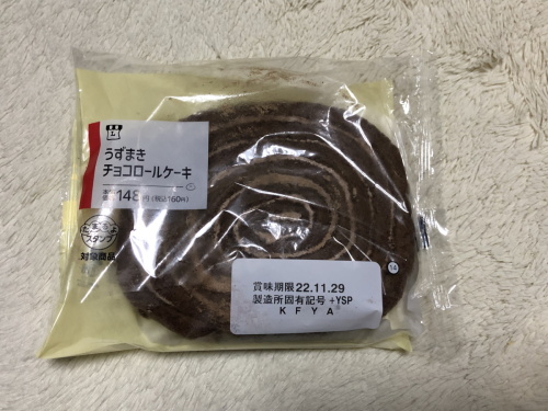 ローソン うずまきチョコロールケーキこれって、このパッケージでパンの棚に並んでるけど、ケーキっていう名前ではデザートコーナーの商品か?ってのが気になるけどココアを練りこんだスポンジにチョコレートクリームを挟み込んで巻いてあるケーキ!?セコマの似たような奴から見たらかなり薄い?けど直径は結構大きくてぼりゅーむは悪くはないかなぁ味もまあよくある感じだけど大きさとあいまってまあ悪くないかなぁ5点中 3.7点