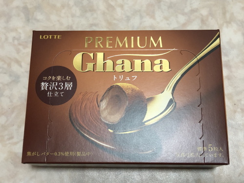 ロッテ プレミアム ガーナトリュフ 贅沢3層仕立て贅沢3層仕立てなのでさすがにおいしいぃけど 寒いからちょっとかたい!?