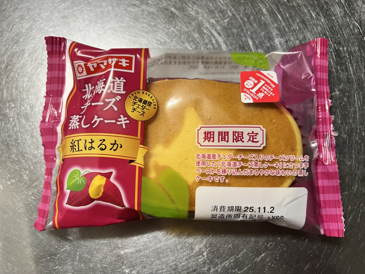 山崎 北海道チーズ蒸しケーキ 紅はるか おお、秋ならではのサツマイモを使ったチーズ蒸しパンだなんて と見つけたので買ってみた 一応、全国で売ってるはずだけど 最近はそんなにあちこちで見かけない? とか聞くけど 北海道イメージが強くなってる感があるけど チーズ蒸しパン自体にも北海道の形があるし・・・・・ そんなことは置いといて 紅はるかのチーズ蒸しパンだけど チーズ蒸しパンの本来のチーズ風味を期待するなら だいぶ薄まってる感じがする やっぱ、紅はるかの風味を生かすためだろうけど チーズ風味は期待しないほうがいいなぁ? その分、意外とさつまいものそれっぽい風味は 感じられてそれの程よい甘みも感じられる。 チョコ系とかにある それこそロッテ系の全く関係ない フルーツの商品名を表に出して 期待して食べてみると 全然、思ったほどじゃない・・・ とかいうのとは違って チーズ風味をあえて抑えて さつまいもの風味を引き立ててるように感じて 意外とさつまいもの風味が程よくなっていて それなりにおいしくできてる感じがする ★★★☆☆彡