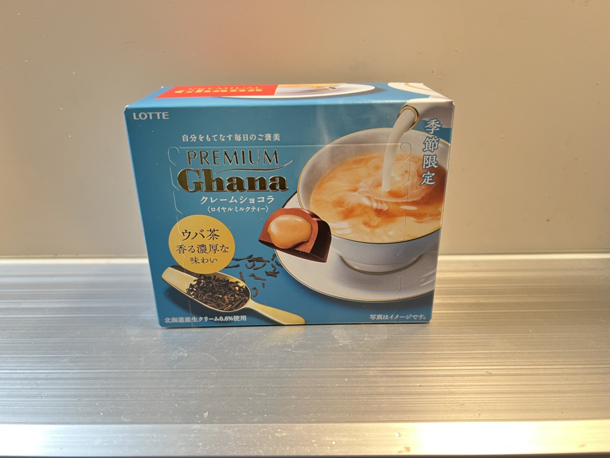ロッテ プレミアムガーナ クレームショコラ<ロイヤルミルクティー>久しぶりにいろんなチョコを買い込んでるけど紅茶と聞けばためさずにいられないプレミアムガーナの中のクリームにウバ茶を使った紅茶の風味を加えたチョコほんのりと紅茶の風味がする感じになってるまあ、あまり強くなくてちょうどよいのかな?個人的にはもう少し紅茶の風味を強めて洋酒を少し加えてもいいような気がした★★★☆☆彡