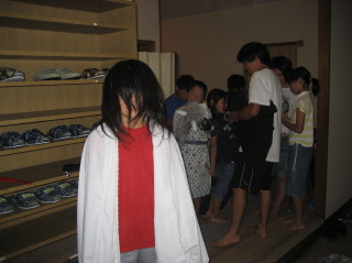 今日一番印象に残ったのはお化け屋敷です。本番になると自分の隠れる場所が怖かったです。本番では、三組の人が気づいてくれなくて少し悲しかったです。でもだいたいの人が気付いてくれて嬉しかったです。またお化け屋敷がやりたいです。