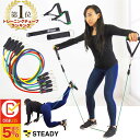 6月10日発送予定【1位獲得】トレーニングチューブ 強度別5本セット 日本語トレーニング動画・収納ポーチ付 [メーカー1年保証] STEADY(ステディ) ST104 ゴムチューブ フィットネスチューブ ゴムバンド エクササイズバンド ストレッチ リハビリ