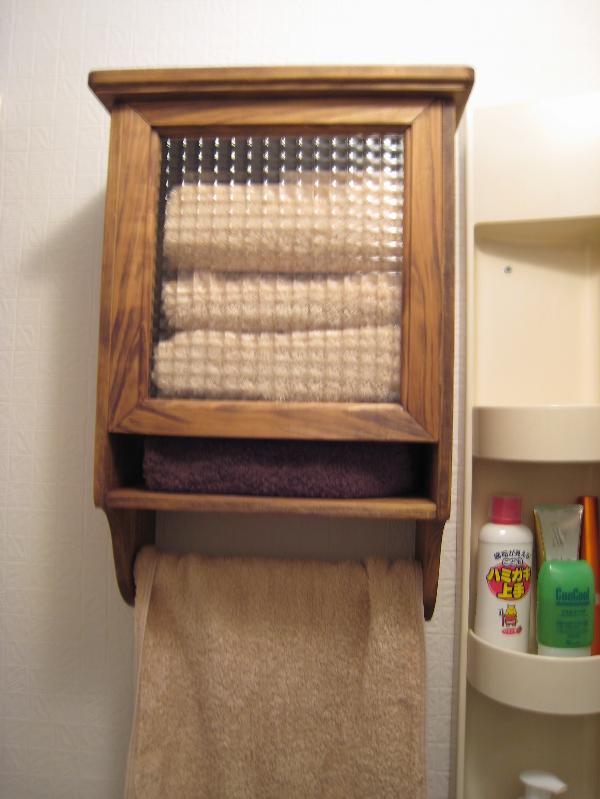 人気のチェッカーガラスを使った木製タオルストッカー!【ご注文製作】アンティークブラウン◇...