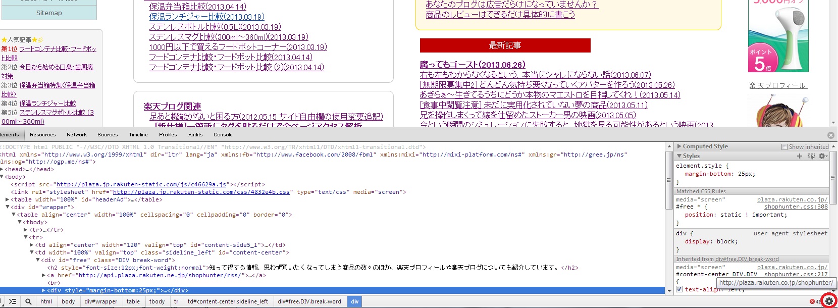 2. 閲覧中のページが上下に二分割され、下半分にページのソースが表示されますが、ここでは無視してください。