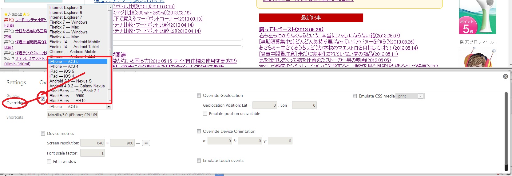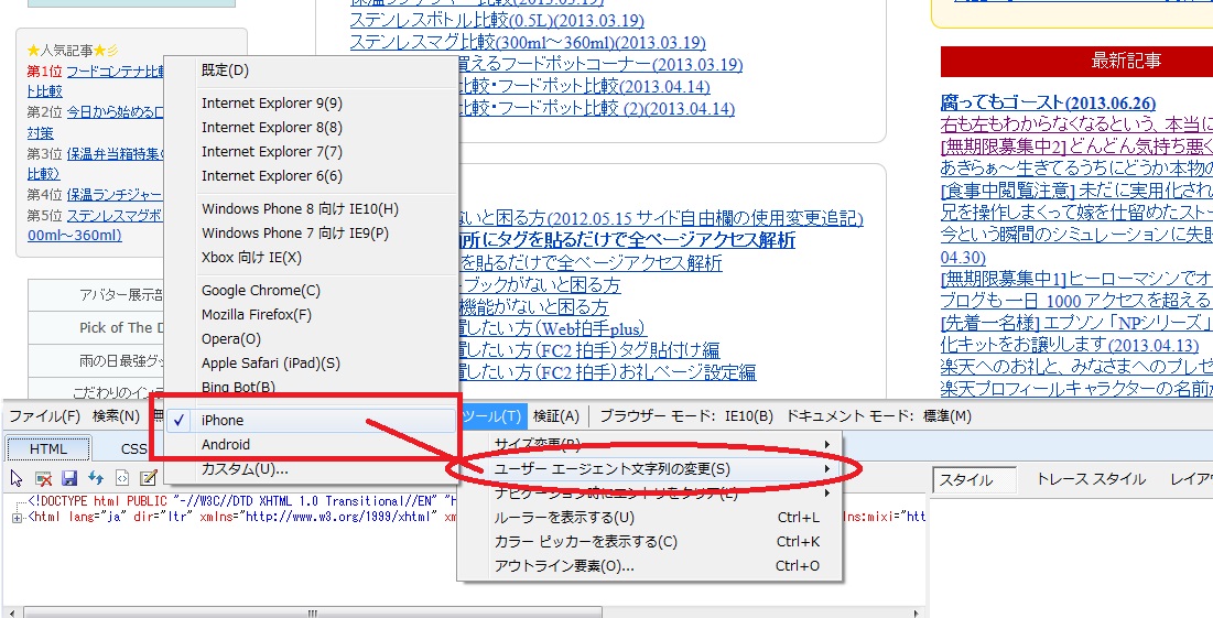 iPhone や Android などのモバイルフォンをお持ちでない方でも、Web ブラウザの設定を少し変更すれば、PC 環境でモバイル用のブログページを照会することができます。