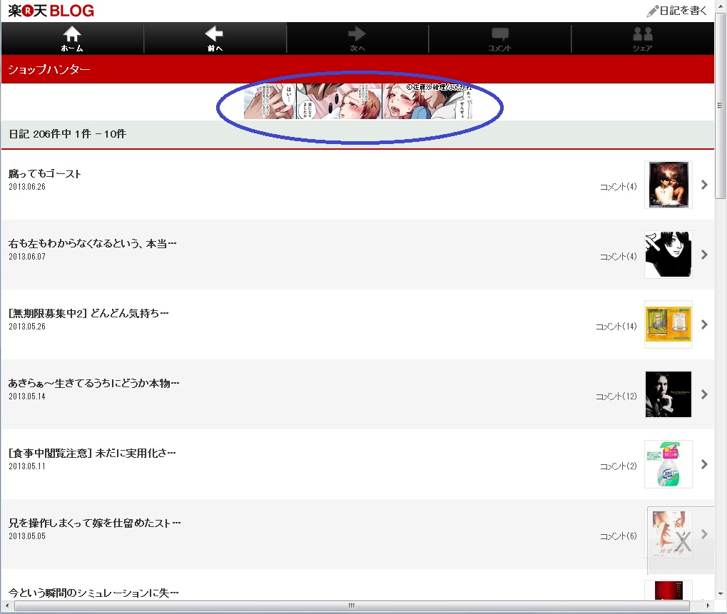 モバイル用のページに表示される広告がエロ漫画系が多いので、これは楽天ブログの方向性としてはまずいと思いますので、中の人どうか改善をお願いします~!