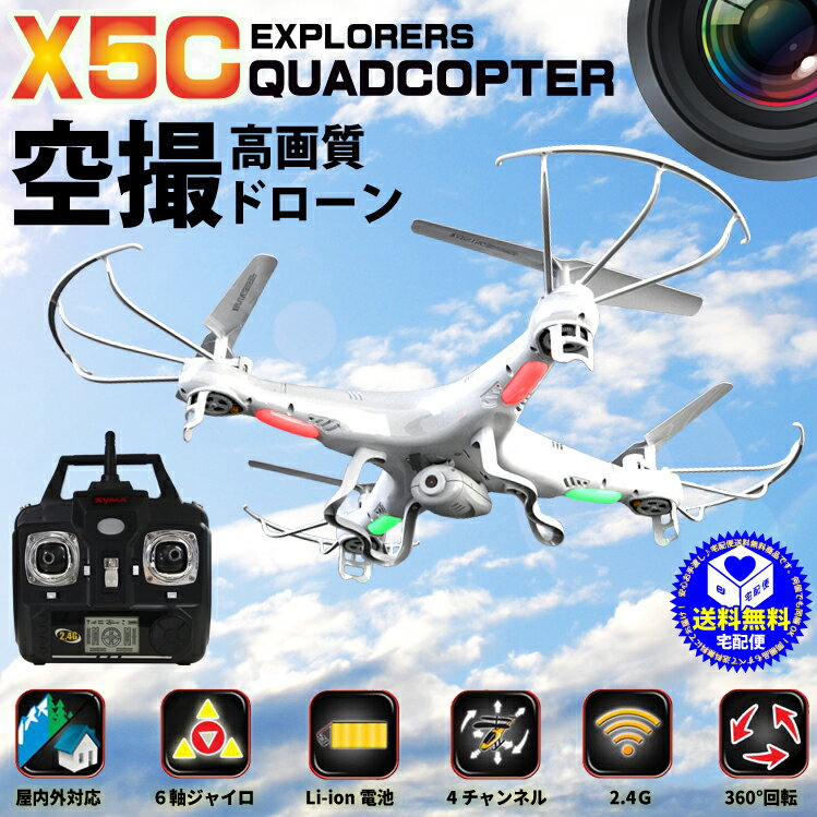 【ドローン】空撮!1万円以下で買える話題のドローン。景色などの撮影に良いですね。 【ej】【保証付き】 ドローン 送料無料 ! SYMA X5C 2.4G 空撮 可能 ラジコン 4ch RCクアッドコプター 6軸ジャイロ で安定飛行を実現! 200万画素 の 高画質 カメラ 搭載! ヘリコプター 屋内 初心者 簡単【宅配便送料無料】