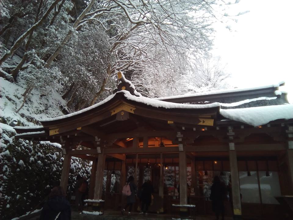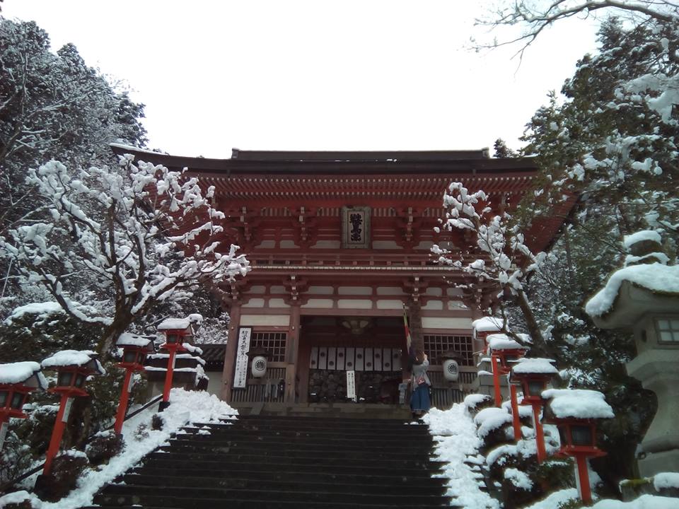 おりしも寒波到来で、貴船神社は雪景色。