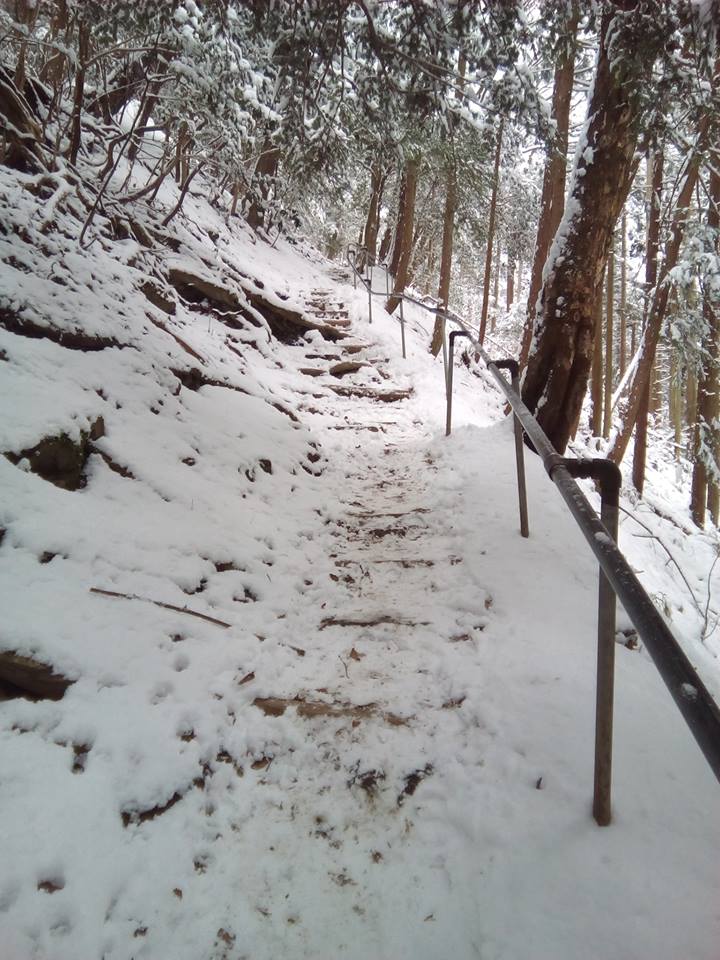 どう見ても、登山ムードで、完全に雪道だが、降りてくる参拝者がいるのを見て、少なくとも登りはなんとかなるだろうと判断。