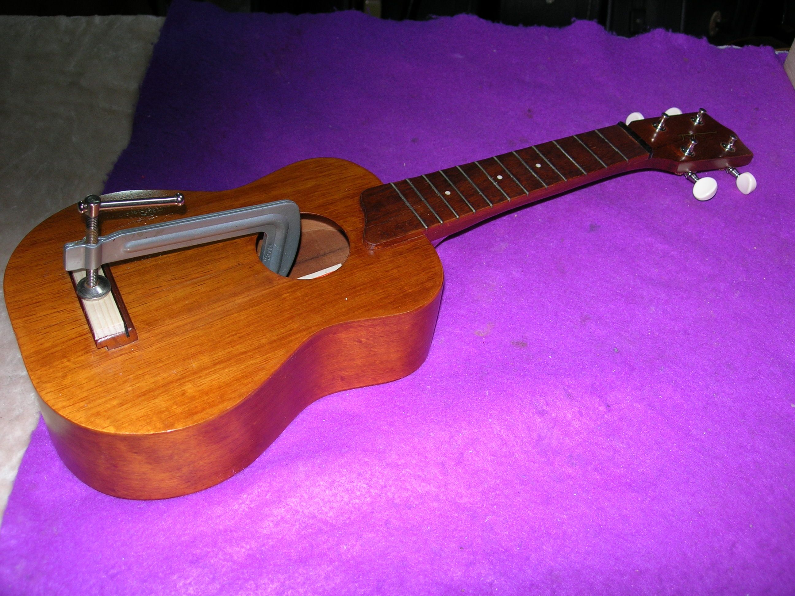 ◆今回のご依頼品は、カマカ・ウクレレ 再リペアです ご依頼者様は、HN/薪拾いジジィさん 様です 本業のスパリゾートの工事と、ご依頼のリペアが重なっておりまして リペア開始までお待たせしまして申し訳有りませんでした。◆ご依頼の内容は、ブリッジの接着&バックのクラック補修です ●ブリッジの剥がれ方も一流で、綺麗に剥がれてくれましたので、ボディに全く影響が 有りませんでした。接着剤が限界だった様です。 ◆既にブリッジの張付けが始まってます。固着するまで一日放置します。●当て木をしてから軽くクランプで固定して行きます。◆バックのクラックの状態です●前回の完全に割れたクラックを補修した箇所の、12mm横の位置でクラックが入ってます。 ソリッド材ウクレレの宿命と、ボディ材が乾燥しきった状態で有る事と、冬場の乾燥が 影響している物ですが、音質は最高の状態です。流石カマカです。◆クラックに対して、バックから膠を流し込んで行きます。爪楊枝の先端で少しバック材を 軽く押しながら流し込んで行きます。●クラックの際をマスキングしてたっぷり膠を塗り貫通させる様にします。◆クラックの長さの上下+5mmのマホガニーで補強しておきます。 膠を接着剤に使います。◆クラック箇所の膠が固まるまで一日放置します。◆全体にオイルフィニュッシュを施します、カラーはマホガニーの様に見えますが、実は オークなのです、通常は400番のサンドペーパで均すのですが、今回はマイクロファイン を使います。 オイル成分が浸透してボディの保護になり、音質への悪影響が出る事は有りませんので安心 です。◆試奏タイム カマカの試奏はとても楽しい時間です。同梱して頂いた Famous の弦を張ってる中で ピッシッン! の音と共に 1弦がブリッジに挟む結び目から切れてしまいました。 ブリッジが剥がれた音の様にも聞こえましたので弦で良かったのですが、ブリッジの弦を 挟む箇所を綺麗に均さないと同じ結果が待ってるかも知れません。◆ウクレレ弦てばら売り無いの?知りませんでした 1弦が切れてしまいましたので、ウクレレ・エキスパートのいらっしゃる島村楽器様へ調達に 参りましたところ、ウクレレってバラ弦は4弦のみで後は4本セットしかないそうです。 知らなかった! しかも Famousの同じタイプの弦は扱って無いとのことで、カマカのソプラノと相性の良い弦の アドバイスをお願いしたところ、【ダダリオ】ならハワイらしい明るい綺麗な音質になるので 絶対お勧めです!エキスパートのアドバイスは素直に従うのが良いでしょう。 なるほど、明るく軽快な音質でワイキキビーチを連想します【行った事は無いですが】 お気に入りの弦とは違う弦を張ってのお届けですが、カマカの違う面を聴いて下さればと 思います。