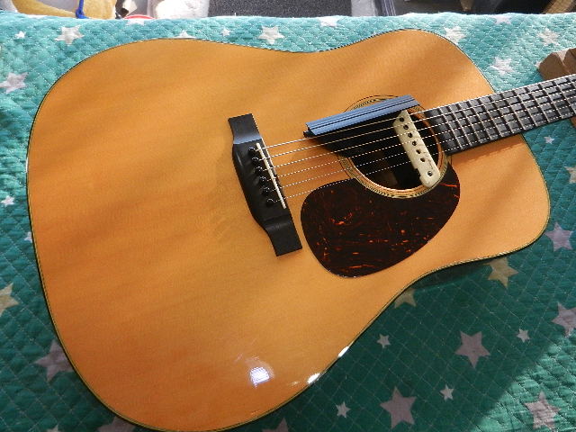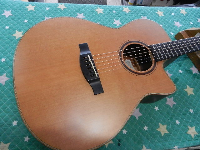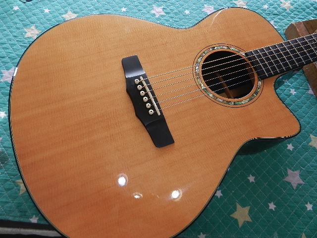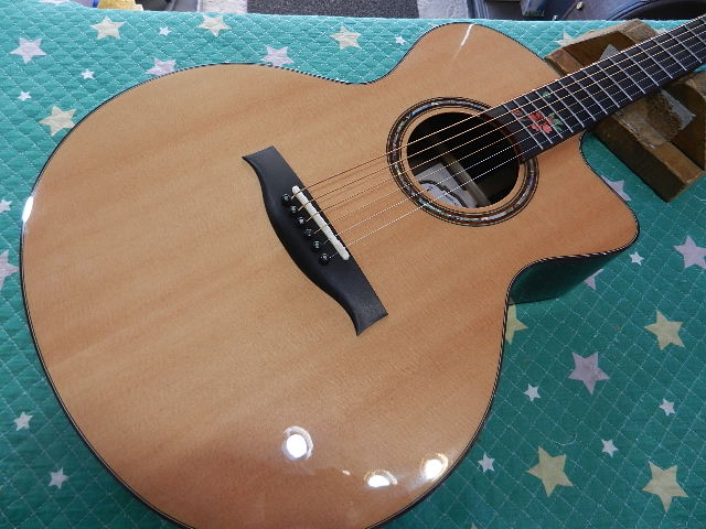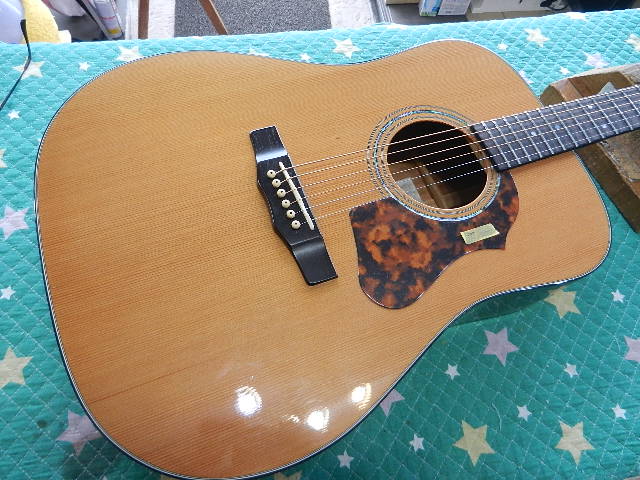 ◆Morris S-92ⅢLR-B LYRIC取付 ギターオーナー様は、Ni 様です ◆画像から確認して行きます●シダートップらしい落ち着いたカラーに変化してます●ご用意頂いたLYRICを取付します●マイクロメーターで測定しますと、約0.25mmでしたので010~のEXライトゲージが 張って有りました。011~のカスタムライトゲージに交換します◆リペア開始して行きます●メーカーお勧めの位置にピックアップを取付けますが、 付属されてました両面テープの接着力が落ちている可能性が有り、使用中に剥がれる事が 有るかも知れません●リペアの完了です🌻K2ギターファクトリー 千葉県八街市 八街 に-67-3 代表 加藤 和久 ☏ O8O-5376-O998 ⁂お車6台分の駐車場をご用意しております