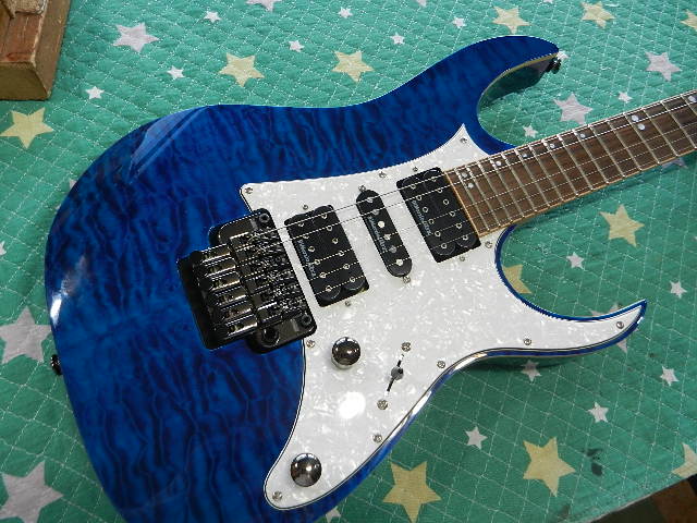 ◆Ibanez RG-950QMZ ギターオーナー様はNaka様です 本業はドラムスなのですが、1年程前からギターを始められたそうです Sisikura様のご紹介でお越し頂きました◆画像から確認して行きます●正しいセッティングがされて居らず、弦高が高いので弾き難い状態です◆リペア開始して行きます●トレモロユニットを限界まで下げて弦高を調整します●下げる限界と思われる、6E/12Fを1.80mmにセットしても演奏に支障は有りません●1E/12Fは1.40mmにセットして有ります●フローティングさせる場合は、画像左上のツマミを回せば簡単に調整出来ます ダンパー式のトレモロユニットはライブでの安心感は抜群です◆セッティングを決めて行きます●1フレットのクリアランスは0.45mmにセットして有ります●弦高を低くセッティングするためトレモロユニットをここまで下げて有ります●6E/12Fは1.80mmにセットしました●1E/12Fは1.40mmです●リペアの完了です🌻K2ギターファクトリー 千葉県八街市 八街 に-67-3 代表 加藤 和久 ☏ O8O-5376-O998 ⁂お車6台分の駐車場をご用意しております