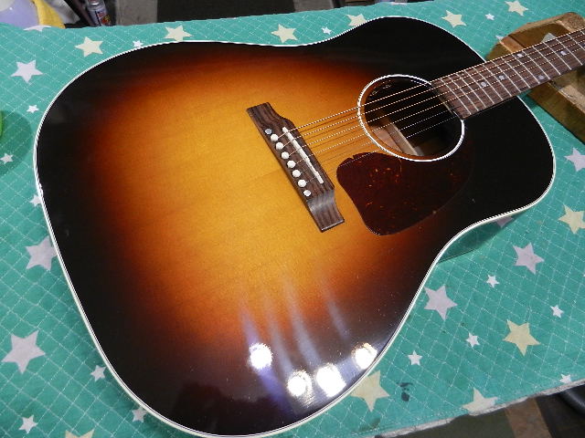 ◆Gibson J-45 セッティング ギターオーナー様は、Toku様です ブログをご覧頂いた事がご縁で来店して頂きました。 D-28と共にお持ち頂きました◆画像から確認して行きます●コードストロークは勿論、フィンガーピッキングでも良く鳴ってくれるギターですが 数十分弾いて居ると指が疲れるそうです●ロッド調整だけで対応出来るか確認します●6E/12Fは2.75mm//1E/12Fは2.50mmまで下げるのが限界でしたので お預かりして工房標準セッティングにします◆リペア開始して行きます●ロッドを微調整しておきます●予定の弦高になる様にサドルを調整します●弦を張り戻して予定の弦高になっている事を確認します 6E/12Fで2.25mmですから予定通りです●1E/12Fも1.75mmで予定通りです●リペアの完了です🌻K2ギターファクトリー 千葉県八街市 八街 に-67-3 代表 加藤 和久 ☏ O8O-5376-O998 ⁂お車6台分の駐車場をご用意しております