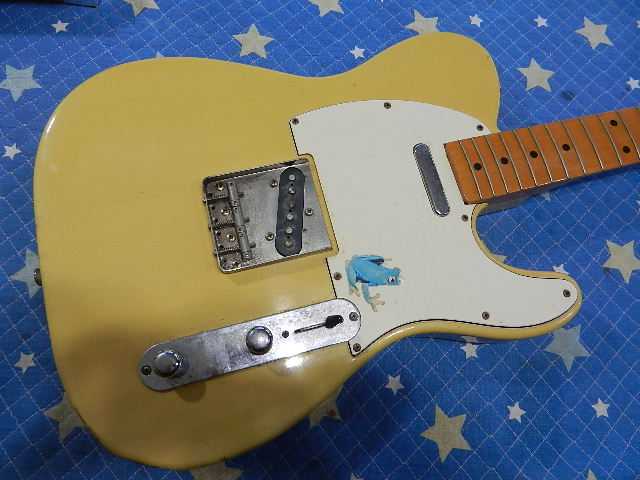 ◆Fender JP Telecaster 再生 ギターオーナー様は、INO様です。 リペアするだけのコストに見合うだけの価値が有る?と言う事でお持ち下さいました。 確かに見た印象でそのお気持ちは判りますが、答えは勿論【Yes!】です。 どのくらいコストが掛かるのか確認してから取り掛かります。◆画像から確認して行きます●弦が無い事とクリーンングされていないギターは印象が宜しく無いですが 手を入れますと、ビンテージの印象にガラッと変化します●スパロゴが一番と考えていますが、テレキャスだけは何故か例外と思ってます ストリングガイドは、チューニングの正確性に直結しますので交換する必要が有ります●海外で製作されて国内で組込されたモデルです◆見積りのため細部をチェックします●フロント&リアピックアップは生きてますので、コスト面で第一関門はクリアしましたが、 ボリューム&トーンポットはビクともしません。完全に固着してます●外部にアルミの粉が吹いてますので、内部は更に凄い事になってます●日本製でも全く信頼性の低い、YM-30は交換する必要が有ります。◆フロント&リアのピックアップからジャクまでの配線を全交換と、ストリングガイド等の パーツ交換で復活させる事が可能です●ボディと金属パーツをコンパウンドで軽く磨きますと、ビンテージ感が出て再生する価値が 有るをお判り頂けると思います●ペグもコンパウンドで磨いてみました 通称カモメ型のストリングガイドは再利用不能です◆リペア開始します●サーキットを全交換します●ストリングガイドを交換しました●全てのハードウェアを取付ました●弦を張って音出しすると、強度の順ゾリで1E弦〜3G弦の15フレットに接触するため ネックを外してロッド調整が必要です。 ●ネックスケールで確認しながらロッドを締め方向に回して調整します メイプルネックの場合は、時間に余裕が有る時は一晩放置してロッドの効き具合を確認する ようにします ●この状態で安定すればOKです●ネックを外す際にボディにもネジ山が有るので、この状態ですとプレート~ボディ~ネックが 確実に締まりませんので、ボディのネジ穴を4.5mmのドリルで広げます●4.5mmのネジがスカスカで通るようにしておきました●前日、ロッド調整したネックが安定してましたので、ネックを取付て音詰まりするポジションを マーキングします●音出ししながら擦り合わせて行きます●フレットエッジが指先に引っ掛らない様に処理します●弦を張り戻してポジション&チョーキングテストします。 指が疲れて来て17フレットから上が思う様に上がらないので、休憩を取りながらテストします●1フレットのクリアランスを揃えます●1E/12Fを1.90mmにセットします●1E/12Fは1.75mmにセットしました●擦り合わせ直後で、チョーキングした時の音詰まりの微調整が必要になる可能性が有ります。 数日確認してから完了と成ります リペアの完了です🌻K2ギターファクトリー 千葉県八街市 八街 に 67-3 代表 加藤 和久 ☏ O8O-5376-O998 ⁂お車6台分の駐車場をご用意しております
