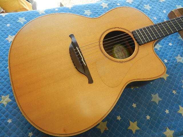 ◆YAMAHA AC1M セッティング ギターオーナー様は、Ms様です Ms様から初め◆画像から確認して行きます●ソリッドトップのモデルでピックガードがT社を思い浮かべてしまいます◆リペア前のコンディションを確認します●1フレットの余裕は僅かなので、ロッド調整に余裕が無い事を意味するので 弦高を下げるには良く無い事です ●6E/12Fで2.75mmはエレキ弾きには厳しい高さです●1E/12Fも2.75mm有ります。◆リペア開始します●ロッドで出来る限り弦高を下げます●4D〜6Eまでは余裕が有りますが、1E〜3Gはこれで限界です●6E/12Fが2.25mmまで下げられました●1E/12Fは2.25mmが限界です●予定の弦高になるようにサドルを削って下げます●6E/12Fは2.25mmで下がらない様に調整して有ります●1E/12Fは1.75mmで予定通りです◆音出しテストをします 通常でしたらこれでリペアの完了になるのですが、新たな問題が出て来ました●1フレットから7フレットの間で音詰まりが凄い事になってます 2フレットが飛び出してます●更に5フレットも飛び出してました フレットの飛び出しはロッドでは調整出来ませんので、フレットを擦り合わせるor元の弦高に 戻して弾き難さを我慢して弾き続けるかの2択になります●フレットを擦り合わせます。 擦り合わせが必要なフレットをマーキングし、チューニングした状態で音出ししながら 擦り合わせます●擦り合わせが済みましたので、弦を緩めてフレットクラウンを修復します●仕上げにピカールでフレットワイヤーを磨いて仕上がりです。◆前オーナー様は、ロッドを緩めて弦高を上げてローポジションの音詰まりを無くして いたのだと思われます。⇒ギターに自分を合わせるので無く、ギターを自分に合わせれば 楽しく弾ける様になると思います。●4D〜6E弦の1フレットの高さの調整が必要です●1フレットのクリアランスを揃えました●6E/12Fは2.25mmです。 エレキ弾きのMs様も納得して頂ける弦高です●1E/12Fも1.75mmで同様です●擦り合わせたフレットワイヤーの仕上がりです●リペアの完了です🌻K2ギターファクトリー 千葉県八街市 八街 に 67-3 代表 加藤 和久 ☏ O8O-5376-O998 ⁂お車6台分の駐車場をご用意しております