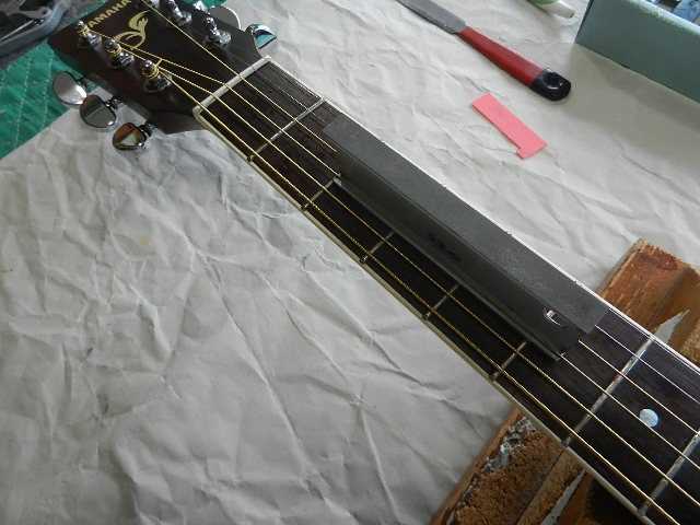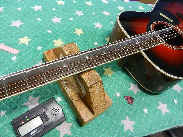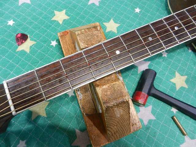 原因はフレットの浮きなので打ち込んで見ます。これでも詰まるので有れば