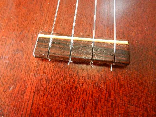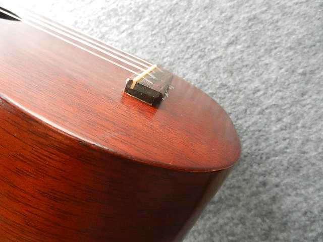 ●ブリッジの弦溝が狭くナイロン弦がセット出来るように溝を広げて有ります。