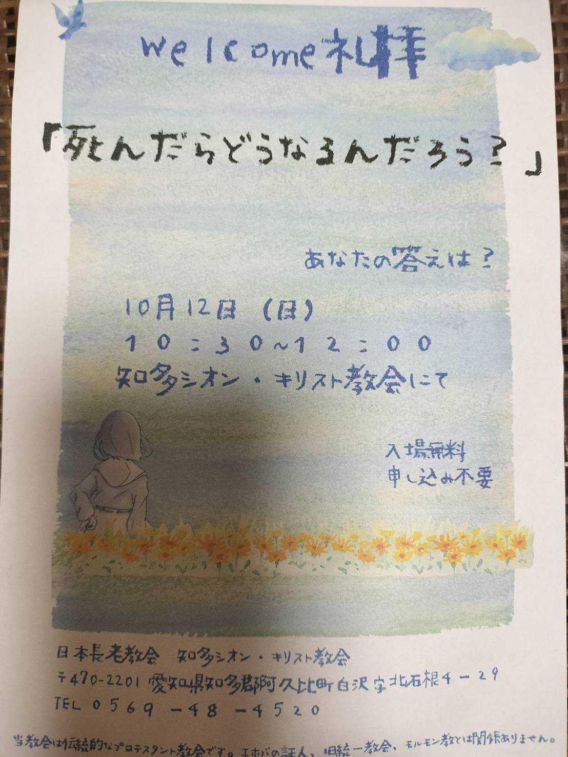 今日はウエルカム礼拝いのちには終わりがあるが、恐れて生きるのではなく、今をどう生き…