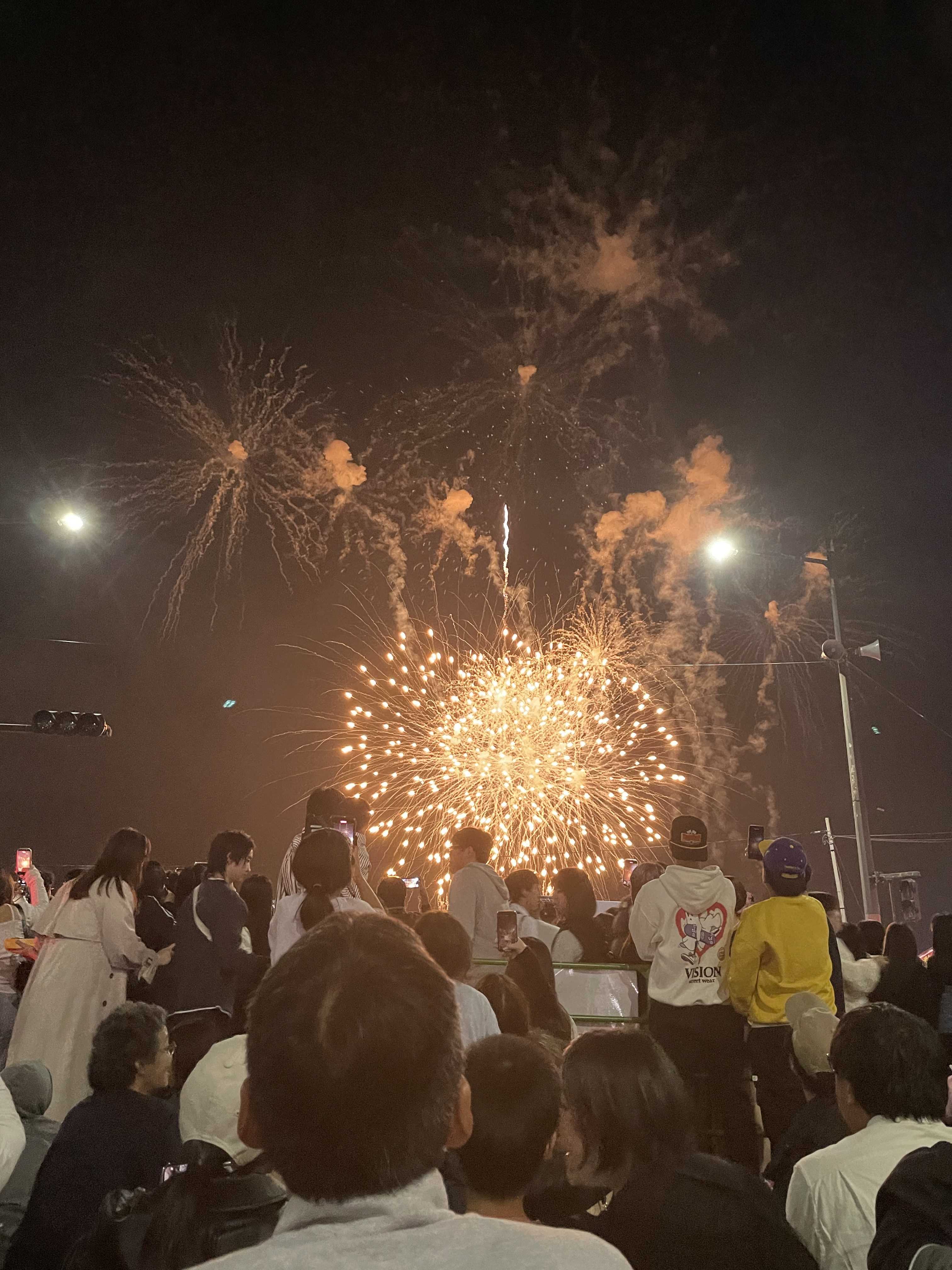 時には妻孝行しないと雷が落ちないようにと花火をまた見たいと言っていたので若松の花火大会に行く事にして少し早めに店仕舞い若松に着いたら凄い人、何処から此れだけ集まるのかとまあ、僕らもその1人だけど😅初めての若松、何処から観たら良いかも分からず人の流れて進んで居たが此処が良さそうと場所取りメイン会場でした😄終わってから若松駅、大混雑僕らは2番手の電車後の方はロープで一旦止められている妻は大喜び、目の前で見られたと確かに迫力は違いますね😄
