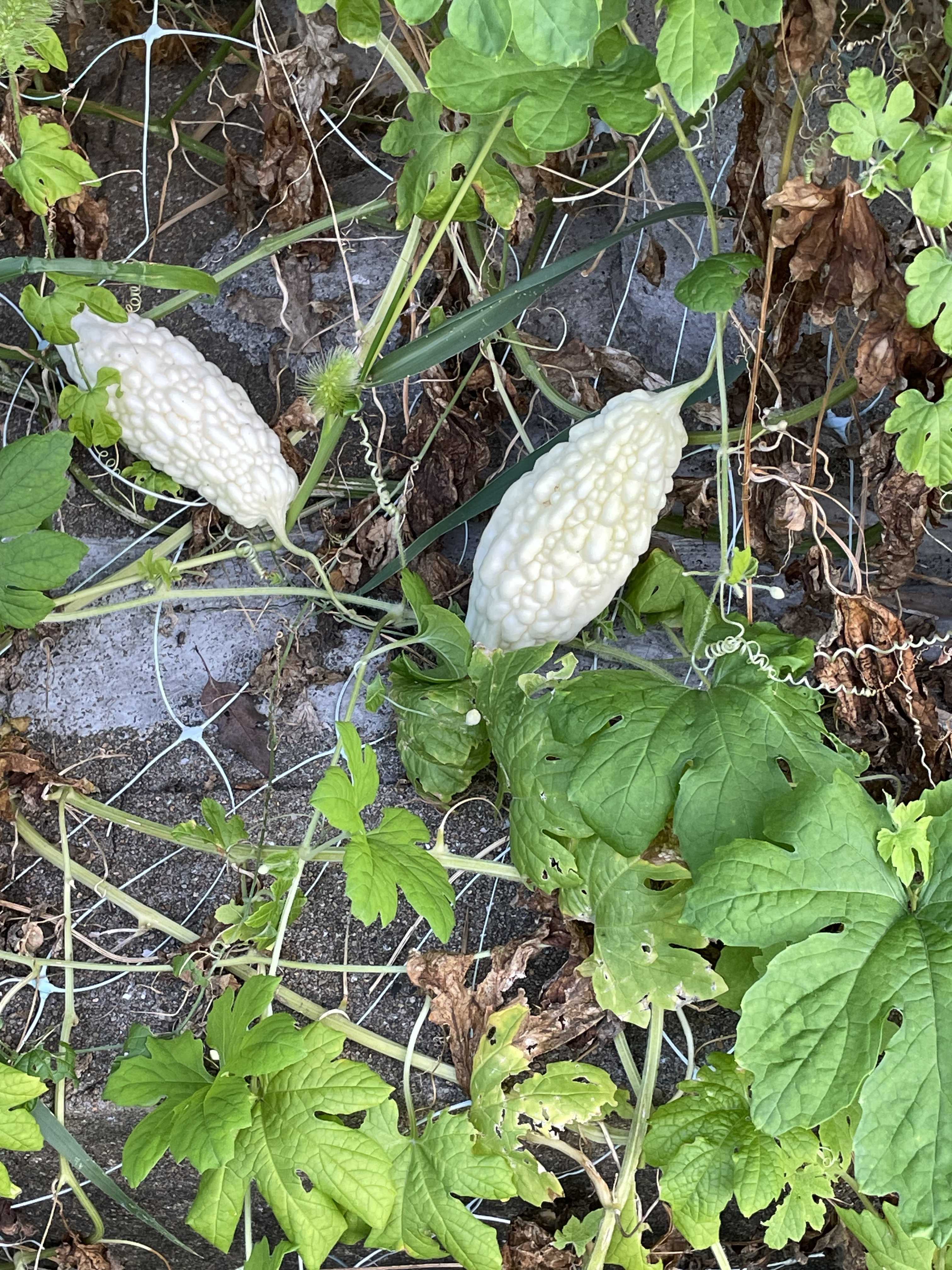 今朝はちょっとだけ家庭菜園に出掛けて里芋などの日除などの撤去例年毛虫の食害を受けるのだけど今年は今のところ無し😊先日、今年最後のゴーヤを見つけてもう少し大きくなってから収穫予定でしたが今朝確認したら少し色が変わり始めて居たのでやばいと収穫😄家の玄関周りのカツオ菜 芽を出して順調かなと思って居たがなんと半分以上が枯れて居る😨もしかしたら土が悪かったかと新しい土に変えて再度種まき、此れで駄目なら種が古いからかも知り合いに苗をあげますと言っているから育たないと困る😅