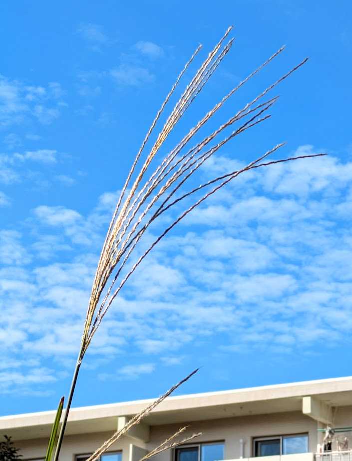 「オッ!さんぽ ススキです!」 徘徊日記 2025年11月11日(火)団地あたり ススキです。まだ穂が開いていません。秋の始まりみたいですけど、今日は霜月11日、火曜日。 10年以上前の話ですが、ポッキーの日とかで騒いでいて、ポッキーを買わされたことがあったような気がします。ひと箱に何本入っていたのか忘れましたが、40人ほどいる生徒さん全員の口に入れようとか思うと、もちろん、1本づつですけど、大へんでした(笑)。 もちろん、リハビリの帰り道です。団地の紅葉です。これはハナミズキの紅葉です。そういえば、昨晩、テレビの若い女性アナウンサーの方が「コーヨー狩りのシーズン」とおっしゃっていて、「おい?おい!」だったことを思い出しました(笑)。えらい時代になりましたね。 こちらは、桜の紅葉です。花も紅葉もいいですね。 で、南天の実が色づき始めました。 南天には白い実で、咳止めとかのせんじ薬になる種もあると思うのですが、今の団地では見かけません。子どもころ、オバーちゃんが甘く煎じてくれたことを思い出しちゃいましたね。 オヤ、バッタです。そろそろ、どこかで冬ごもりしないとやばいんじゃないの、とか思いながら写真を撮りました。スマホを構えている間、じっとしてくれていて、いいヤツ!でした(笑)。にほんブログ村追記 ところで、このブログをご覧いただいた皆様で楽天IDをお持ちの方は、まあ、なくても大丈夫かもですが、ページの一番下の、多分、楽天のイイネボタンを押してみてくださいね。ポイントがたまるんだそうです。