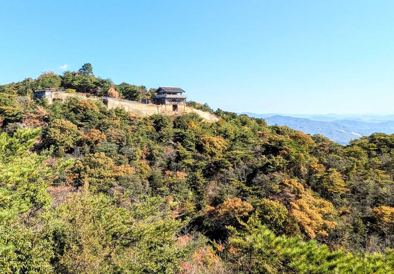 「ここは鬼ノ城!」徘徊日記 2025年11月16日(日)その1 岡山・総社あたり 2025年11月16日の日曜日の午前8時すぎです。自宅の電話が鳴って、愉快な仲間のトラキチ君でした。「岡山行くからね、9時過ぎに駐車場に来て。」「あ、はい。」 というわけで、岡山です。昨年、桃太郎の神社とかいって誘われてやってきた吉備津神社の北方の鬼ノ城が目的地でした。 というわけで、あっという間に鬼ノ城です。総社という町の北にそびえていて、とても歩いて上ることはできそうもない山の上でしたが、すぐ近くまで自動車で登ることができるというわけで、誘っていただけたようです。 現地の地図です。 駐車場まで山道を自動車で登ってきました。 トラキチ君は。付近一帯の山を歩き回る算段のようですが、シマクマ君とチッチキ夫人にはそんな覚悟はありません。「じゃあ、行ってくるわ。」「ええー、ボクらはどうするの?」「この上で待ってたら。帰ってくるから。じゃあね。」 さっさと、隣の山への階段を上っていってしまって姿が見えなくなりました。というわけで、取り残された二人は、方向指示の看板の「西門」の方角に歩き始めましたが、さて、どうなるんでしょう。 お天気が、やたら快晴なだけが頼りですね(笑)。 歩き始めると、すぐでした。西門のあたりの土壁です。 なぜか、お買い物姿のオバサンが歩いていていらっしゃいますが。神戸から息子に連れられていらっしゃったようです。「高い所は嫌い!」なんだそうですが、ここはすでに、かなり高いところなんですけど(笑)。にほんブログ村追記 ところで、このブログをご覧いただいた皆様で楽天IDをお持ちの方は、まあ、なくても大丈夫かもですが、ページの一番下の、多分、楽天のイイネボタンを押してみてくださいね。ポイントがたまるんだそうです。。