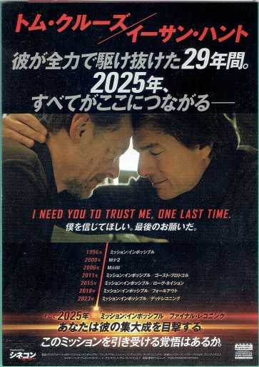 トム・クルーズの映画! となっている ミッション・インポッシブルのシリーズ の最新作、 クリストファー・マッカリー監督 の 「ファイナル・レコニング」 を見ました。