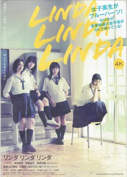 ​​ メインはこの映画でした。 山下敦広監督 「リンダリンダリンダ」 です。20年前の映画のリバイバルです。春先から上映のチラシが出回り始めて期待していました。