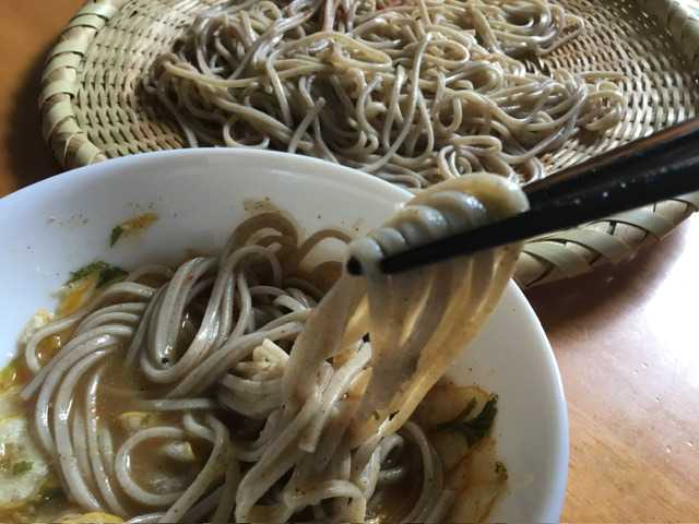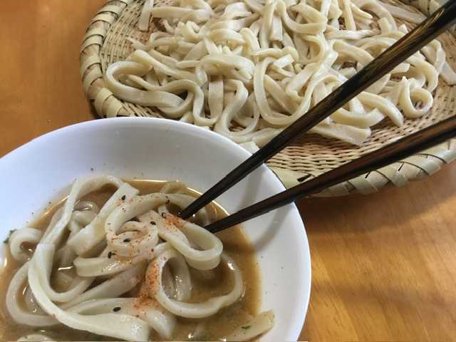 「手打ちうどんde冷や汁」半世紀以上も前の子どもの頃に食べた冷や汁を思い出しながら再現を試みました。私の故郷である群馬県の東の端にある東毛地区は二毛作で小麦栽培が盛んだった。梅雨に入る前、麦秋の景色が見られたのです。麦秋といえば情緒が有りますが、小麦の収穫の折に肩に担ぎ上げるときに、私の記憶は小麦の穂先の細いのが首の間から入ると痒かった思い出の方が強い。30℃を越した蒸し暑い日は決まって手打ちうどんの冷や汁が定番だった。私も手打ちうどんを打つようになったのは小学校5年生の時に覚えてだから既に身体に手打ちうどんの打ち方は染み込んでいるかも。60才を超えてから手打ちそばを打ち始めたので、手順の粗い手打ちうどんは楽勝です。今回は小麦粉はあぶくま山系の地粉を先日、直売所で手に入れたのでそれを使いました。できあがった手打ち生うどんは600gです。胡麻を炒って擂り鉢でスリスリ、味噌に大葉を刻んで加えてから冷水を注げば付け汁の完成です。感想としては8割がた復元成功です。当時と小麦粉の粉が違うのでうどんののどごしの味が違うのは致し方ないかも。 #手打ちうどん #冷や汁 #普段そばを打っているので手打ちうどんは楽ですね手打ちうどんをつくるのに、私は蕎麦打ち同好会に入会したために本格的な道具一式を先輩に安価にて譲ってもらいました。よって本格的に日本そばを打つ道具がフルセット持っているのです。水分量を測るカップも1ccまでもの目盛りがあり、水もこだわりの美味しい水を汲んできている。塩も吟味した美味しい塩だ。なのに子どもの頃に家族と一緒に食べたあの時の冷や汁・手打ちうどんの味には敵わないのだ。郷愁の懐かしい味なのだ。 ◆◆◆◆◆◆◆◆◆◆◆◆◆◆