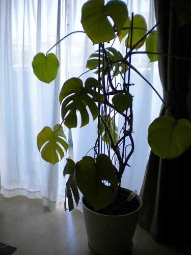 ずっと気になっていた観葉植物、モンステラを植え替えた。 長女の彼氏が遊びに来ていたので、手伝ってもらったのだけれど、女手には結構きつい仕事だったと思う。 植木鉢いっぱいに根が張って、それを鉢から出すのが一苦労。 三人がかりで、うんとこどっこいと引っ張った。 一回り大きくした鉢に植え替えたとき、モンステラは思い切りゆったりと寛いでいた。 きっときつかったに違いない。 黄ばんだ葉っぱが元の緑にもどるのだろうか。 否、戻って欲しいと思う。