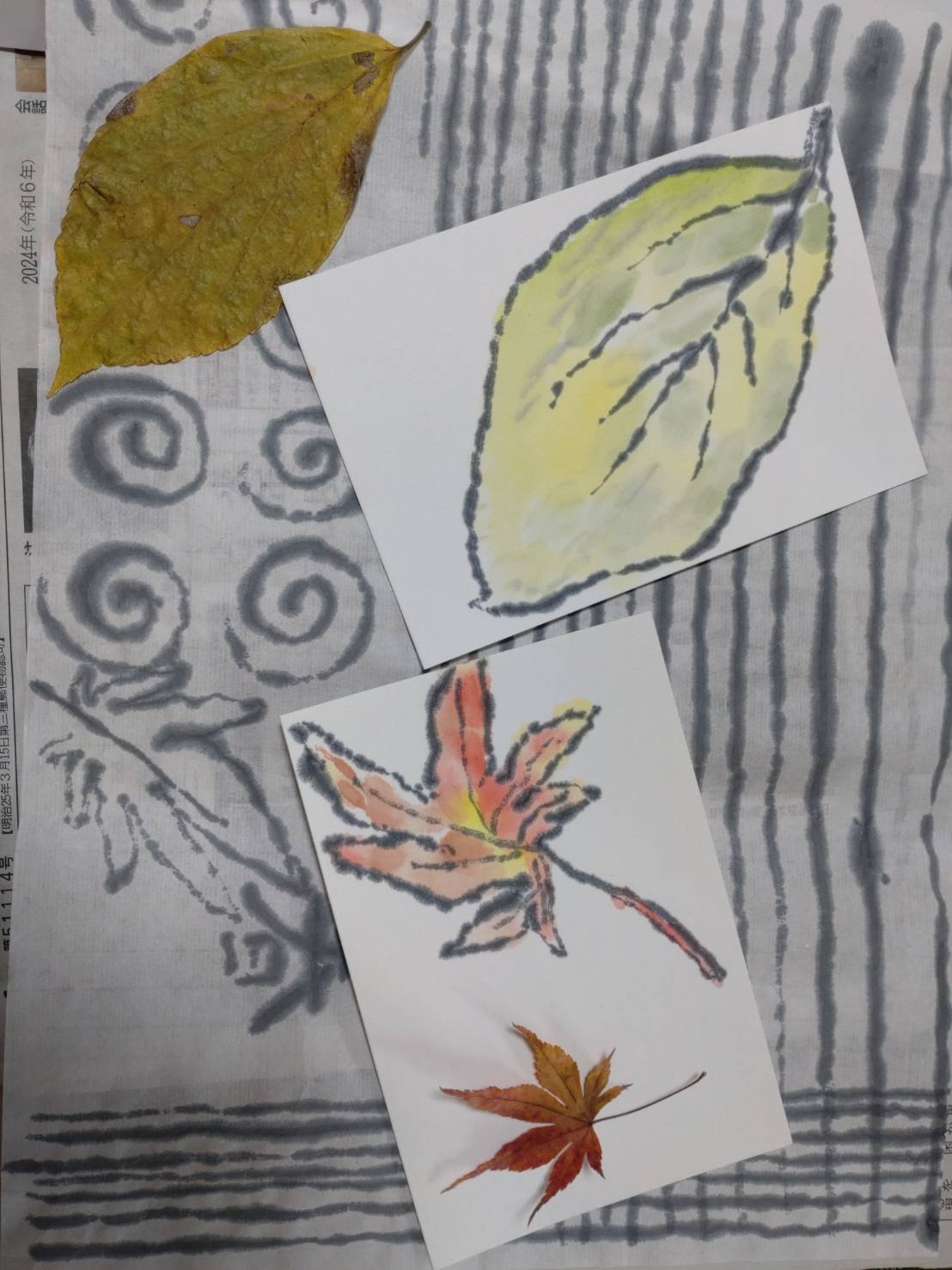シニア大学の知人に誘われて絵手紙体験行きました基本の横線、縦線書き手がふるえて思うようにいかないゆっくりに時間をかけて線を描くただ線を描くだけなのに練習あるのみ 縦線のあと、のの字左巻き、右巻き、文字にもチャレンジ、本日の課題秋の葉をはがきに描き色をたたくように色を入れる迄やりました90分で形になった他の方の絵手紙も見せて頂き参考に全員で色合いとバランス、字帯等確認する楽しい時間を過ごしました次回12月迄に材料を揃えて参加したいと思った半日でした習い事は緊張したがメンバー方々が優しいからから続けてみようと思った