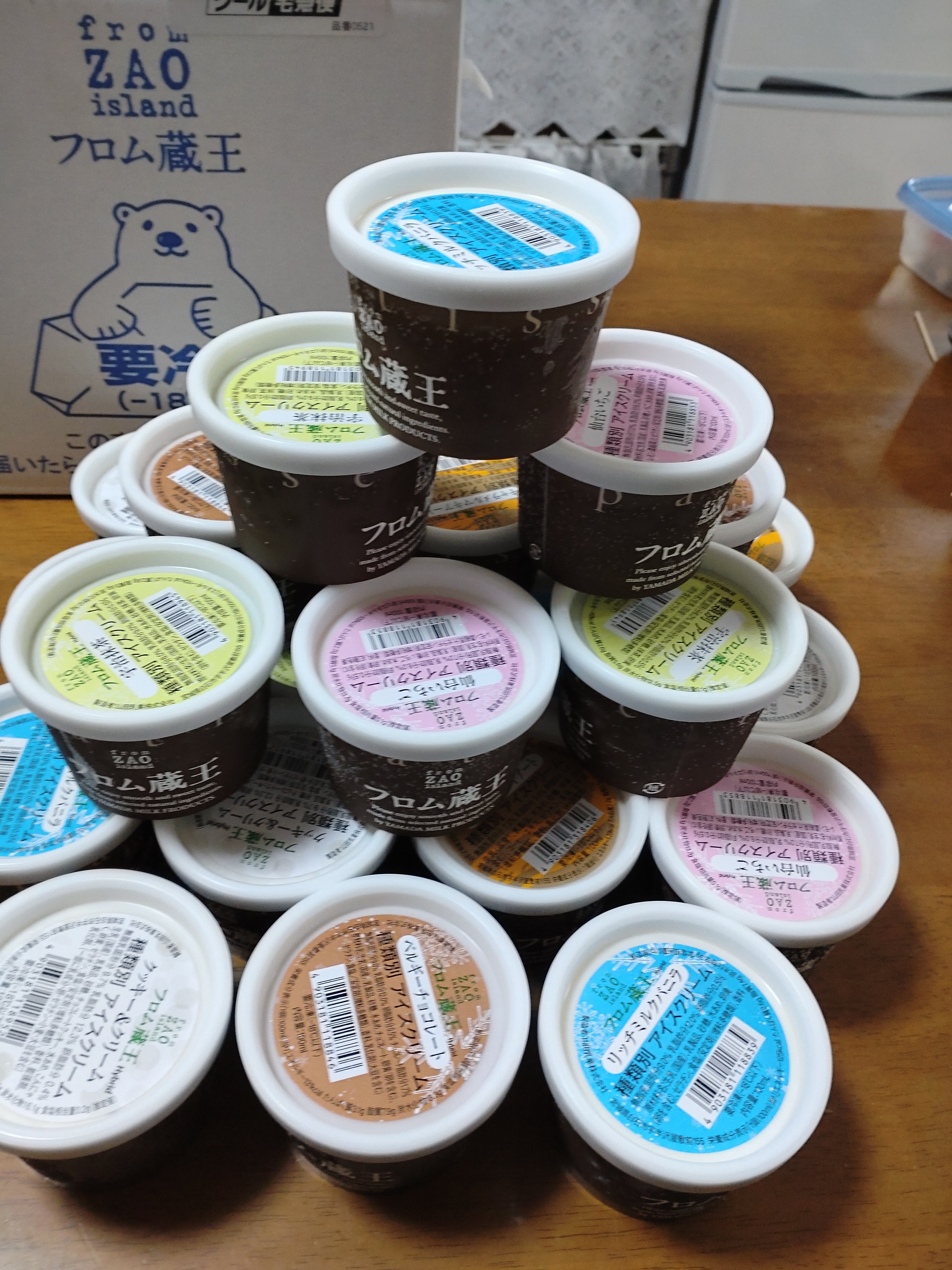 関東に住む妹からお見舞い宅配が届きました 開けたらビックリですアイスクリーム沢山24個もありました 具合が悪くなるとアイスばかりの日々薬の副作用か喉と口が異常にかわいて冷たい物がほしい氷菓は欠かせないアイスの贈り物は嬉しく思わずアイスタワー作ってしまいましたしかし問題あり冷凍庫がアイスでいっぱいになり他に入る余地無しお見舞い第二弾あり沢山のツヤツヤの大きな金柑です家庭菜園で収穫した物鳥が食べ始めたから残っていた金柑全て収穫したと言ってました長野と温度差が分かると思いますが関東神奈川県は暖かいから実家では甘夏、柚子、金柑等の柑橘系が庭木としてあります亡き母が元気な時は冬至の前に柚子が送られてきたなあと懐かしいです今日は体調良いから甘露煮作ってみようかなと思っています