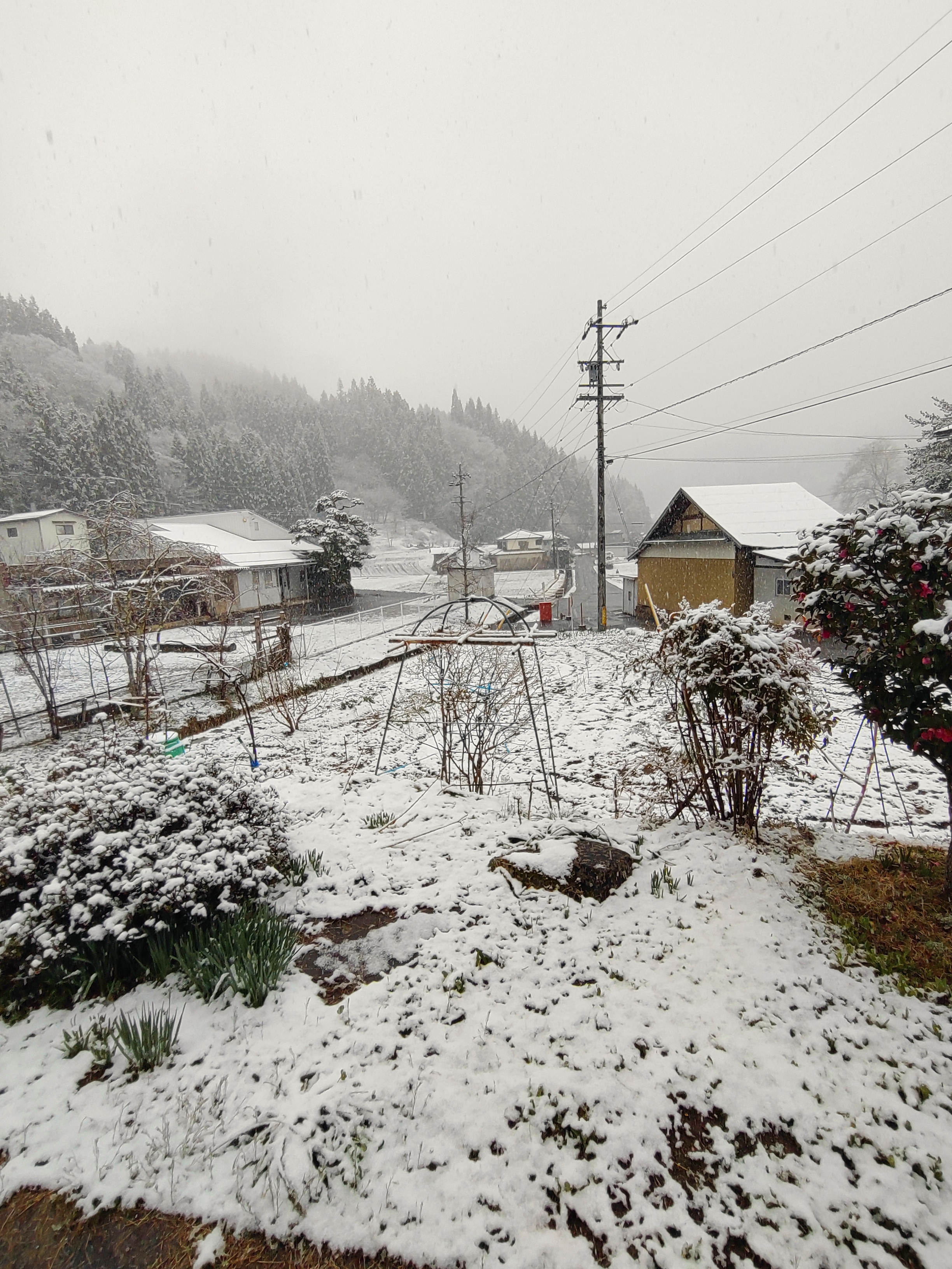 今朝起きたら雪だった まだ降るの?昨日より寒い朝 また冬に戻った春の雪は水ポッいからお昼には太陽が出て解けてしまいました3/28通院から帰ってから山の幸ひらたけを収穫しました 寒い中でも成長してます先日主人が耕した じゃがいもを植え付ける畑も見に行きました 綺麗に耕作できてた 去年は4月23日に種芋を植え付けたが今年はもう少し早くする予定らしい