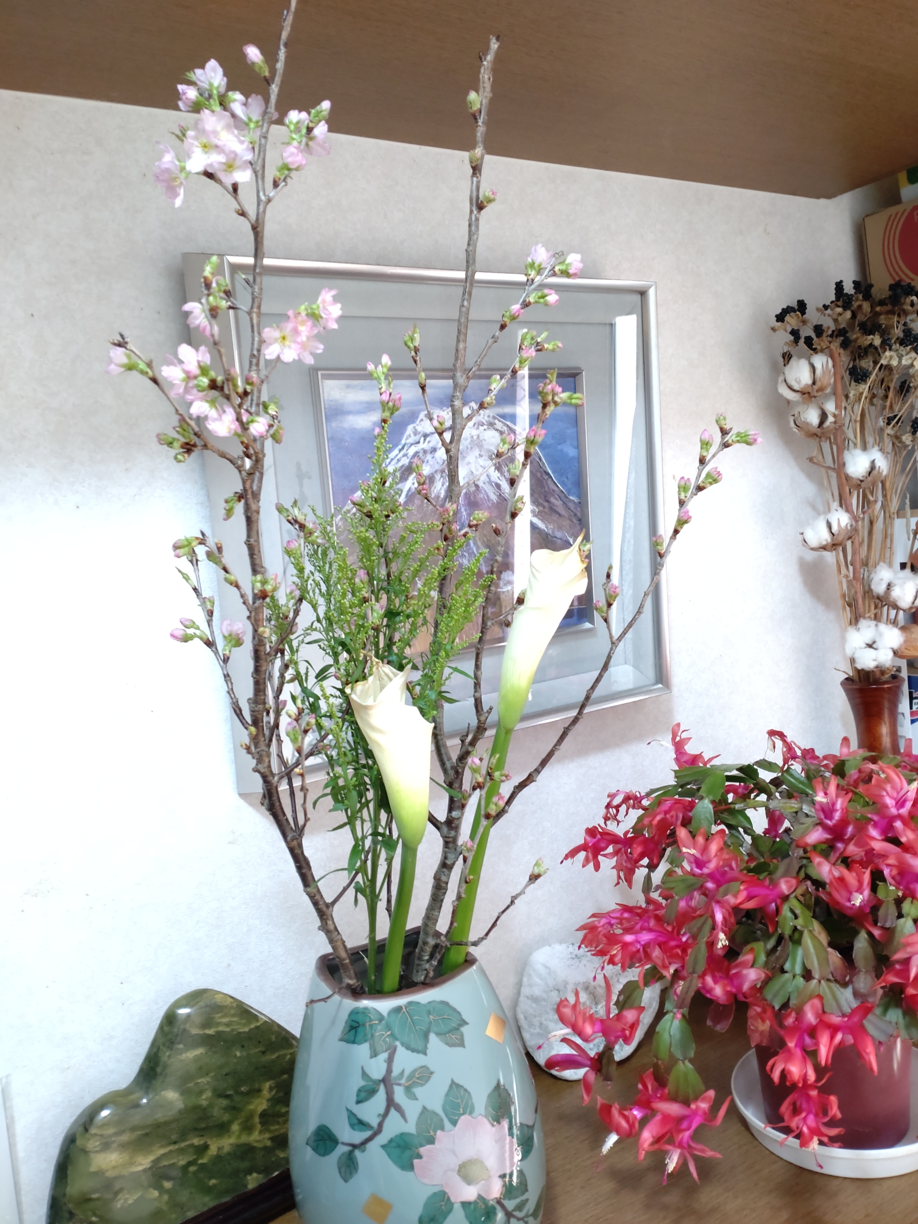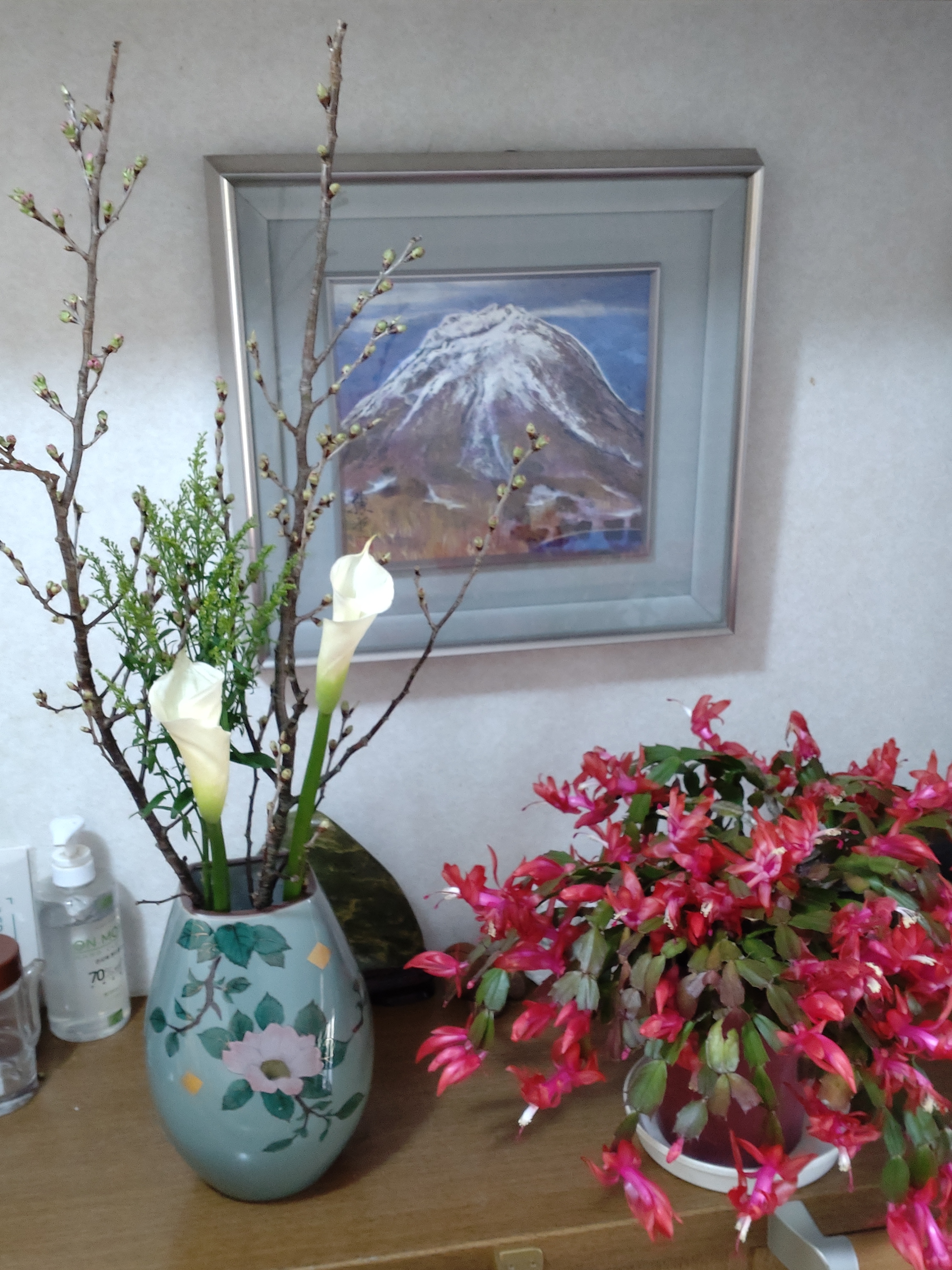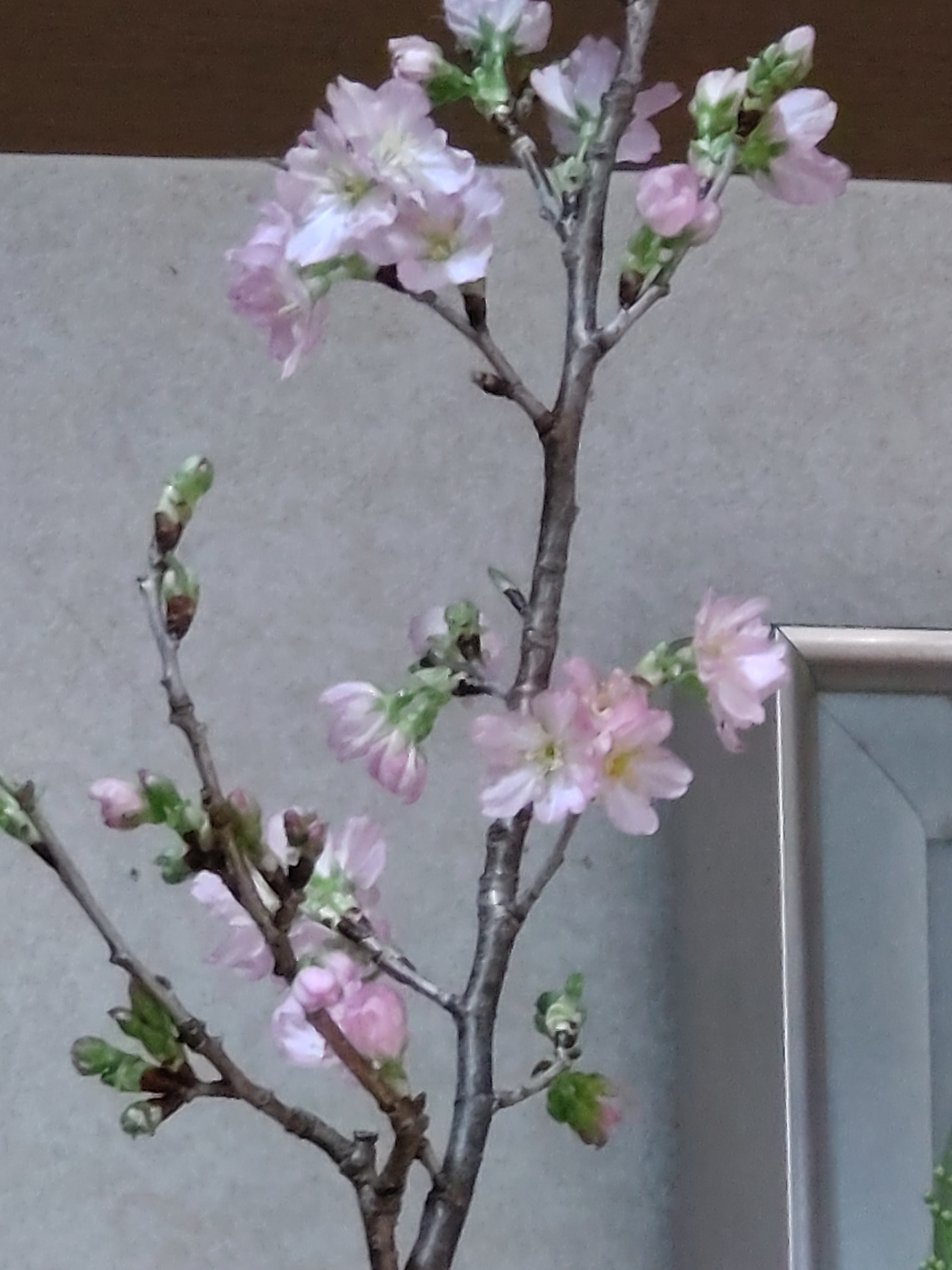 1/24に蕾の桜の小枝2本を花屋で買い玄関に飾り