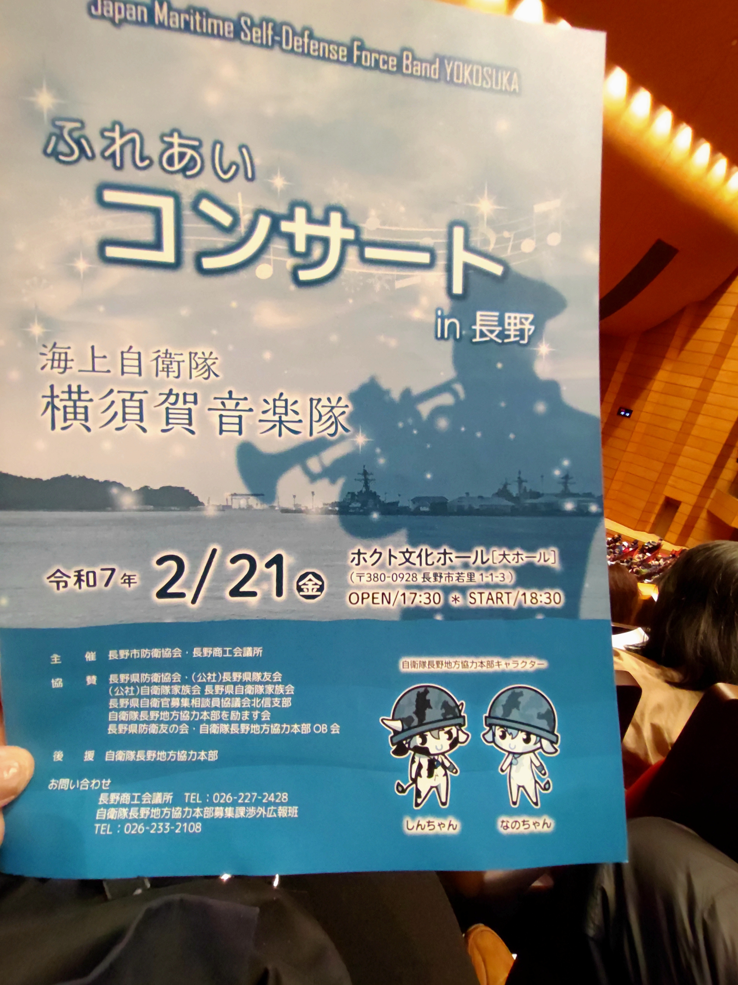 2/21横須賀海上自衛隊音楽隊のふれあいコンサートをホクト文化ホールに夫婦でききに出かけました