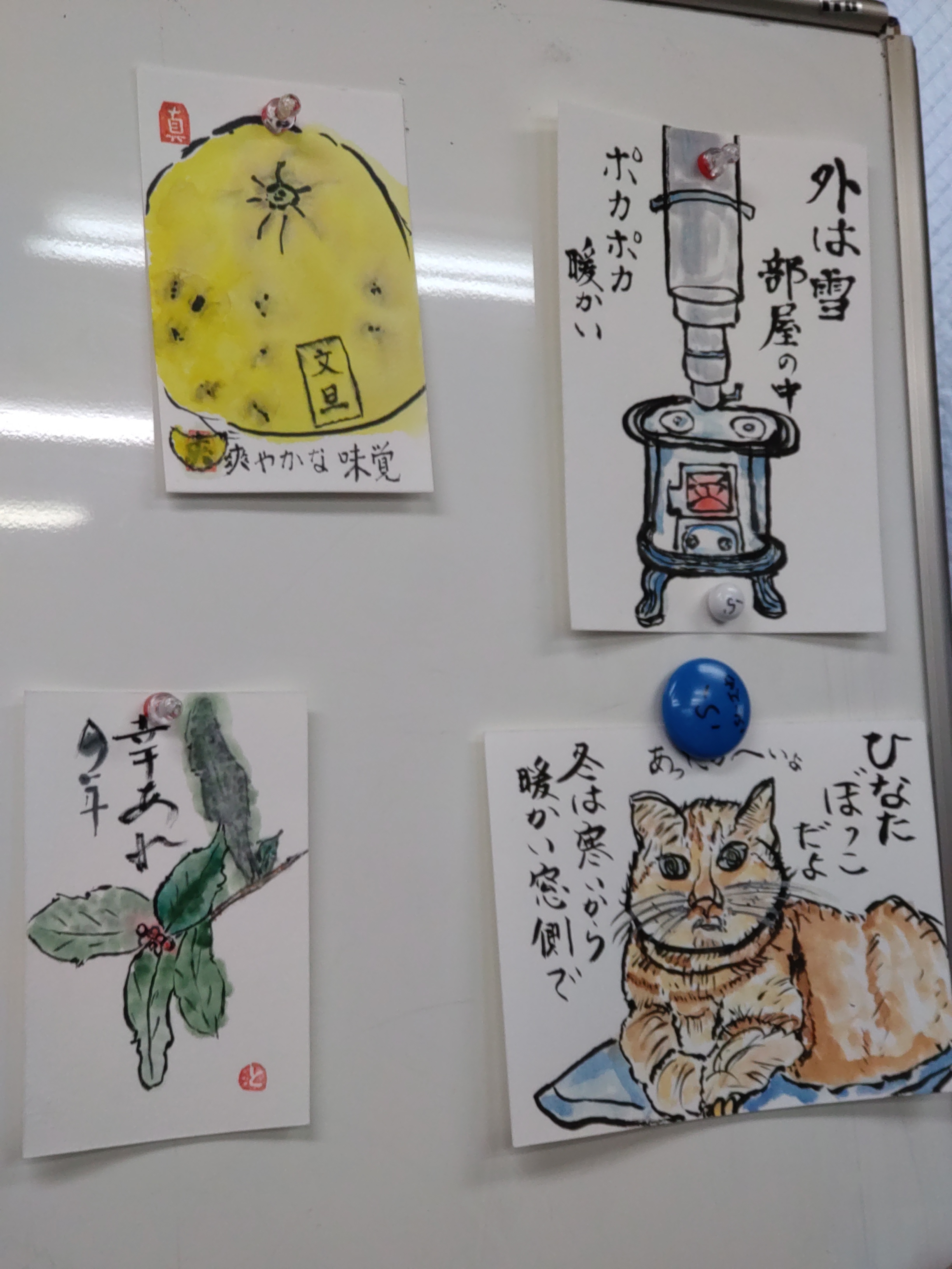 今日は朝から雪が舞っていたがお昼前にはやんで曇り空でした 青い空もでたりしたがじきに雪が降って来た はっきりしない天気の一日私はこたつにこもり 録画したテレビをひたすら消化させた一日だった