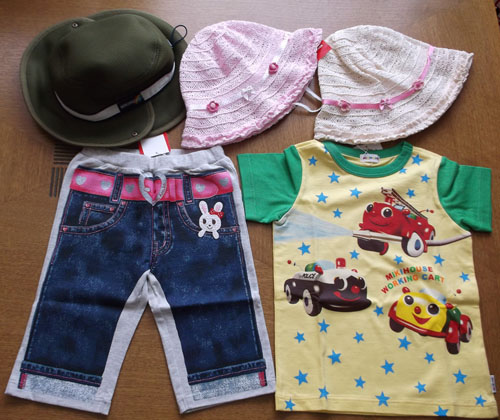 本日7月13日16時より、ママプレ・キッズさんで、今度はホットビスケッツのオリジナル福袋が販売されます。全国一律特別配送料金540円(税込)発送は7/14以降【数量限定】ホットビスケッツ6千円2014年夏物...価格:7,020円(税込、送料込)金額もお手頃だし、気になることは気になるのですが……。ゆうべ、アットレートマートさんで、男女混合セルフ福袋を作ったので、私は見送ります購入したのはこの5点。 (※画像は他店のものです)1.【カートくん】WORKING CART半袖Tシャツ(201-452-42)サイズ:110cm 色:黄2.【ミキハウス】フリル付き♪レース素材のガーリーハット(帽子)(12-9110-679)サイズ:54cm 色:ピンク3.【ミキハウス】フリル付き♪レース素材のガーリーハット(帽子)(12-9110-679)サイズ:56cm 色:アイボリー4.【ミキハウス】★UVカット対応★ダブルラッセル☆テンガロンハット(12-9108-843)サイズ:56cm 色:カーキ5.【ミキハウス】うさこ♪デニムプリント6分丈パンツ(12-3109-848)サイズ:110cm 色:グレーカートくん以外は、全部、半額でしたなんだか最近、すぐにミキハウスも半額になりますよね……。定価ですぐ買ってすぐに着せるなら良いですが、はんぱな値引率で来年以降用に先買いしておくのは危険だと感じる今日この頃です