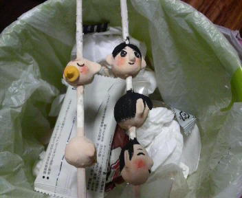 我が家は安産祈願で千羽鶴を作ります。一人目の娘のときにも作りましたが千羽鶴の天辺に家族のキャラクターをつけてます。※増える家族分で鶴は順調に増えて糸で留めるとこまできましたがキャラクターはまだ手付かずでした。今回は双子なのでその分も作ります。使うのは100均の軽量紙粘土!これに軸を通すため割り箸を刺して作ります。コロコロ丸めて耳と鼻・髪をつけてぶすりとさしていきます。こんな感じで双子の分も作ります。(娘はバブーと呼んでいる)あとは乾いてから。紙粘土は大量に余るので最近不足してきた自作ルアーも作ることに。こんな感じですがどんなふうになるかな?にほんブログ村 家族ブログにほんブログ村 家庭・家族にほんブログ村 ハンドメイドブログにほんブログ村 木工にほんブログ村 車 修理・整備にほんブログ村 自作PCにほんブログ村