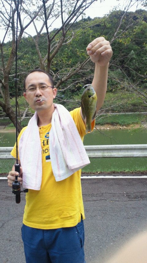 世の中台風ですがとても待っていられません!嫁さんの買い物に付き合いそのまま試釣に行きました。風邪は強いが雨はなし!!レッツゴー!さてニューロッドですが4センチのノーシンカーワームも投げれます!前のロッドより若干飛距離は落ちた気がしますがほんの気持ちです。※それ以外に得なことが多いからいいでしょ!片手投げがしやすい長さです。そんなこんなでミニミニワームを投げたら即アタックしてきました!もちろんギルが・・・・・・・。でも良いんです。楽しめれば!これから釣りやすい時期になります。楽しみが増えました。