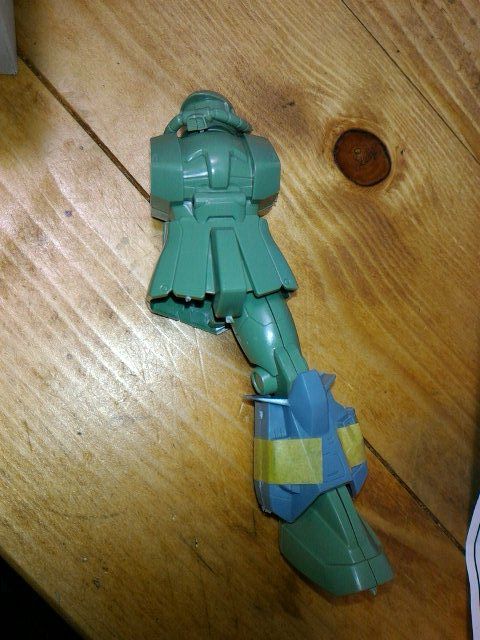 さかのぼると 昨年の10月に1回目を記録した06R ザクⅡです(*^_^*)陸戦型が完成したんで次はマクロスに行く予定でしたが・・・・・・じつは次男が熱で学校を休んだ時に暇つぶしにと FGザクⅡを作らせていました。しかし途中で放棄。それがいつまでもあるのでFGとMSVのミキシングで06Rを完成させようと思いました。作りたいのは MSVのパッケージイラストです(*^_^*)MSVの 改造をするより圧倒的に 簡単に完成できそうな感じですけどはたして・・・・・とりあえず 06の特徴であるスネを移植してみます。!!!!!!!!!なんてことでしょう!そのまま取り付けができました(^o^)/内部フレームの取り付けが甘いのでガタツキますが何もいじらすに そのまま合わせれるのはすごいです!動力パイプは長さが足りませんがそれ以外は楽勝ですね(^o^)/ランドセルは 少し大きめですがそのままでも違和感は無い感じ。あとは FG特有の合わせ目を消すくらいでしょうかね〜〜〜なんか完成が見えてきました(*^_^*)パッケージイラストをビネットにすると2機が限界ですのでとりあえず2個 同じ作業が必要です。あと1機はザクバズーカを持っているのそれを 武器セットから用意しました。1機700円位コストがかかりますがそれでも 手間を考えると安いものですよ(*^_^*)とりあえず 関節は全てアルミ線にします。にほんブログ村 家族ブログにほんブログ村 家庭・家族にほんブログ村 ハンドメイドブログにほんブログ村 木工にほんブログ村 車 修理・整備にほんブログ村 自作PCにほんブログ村