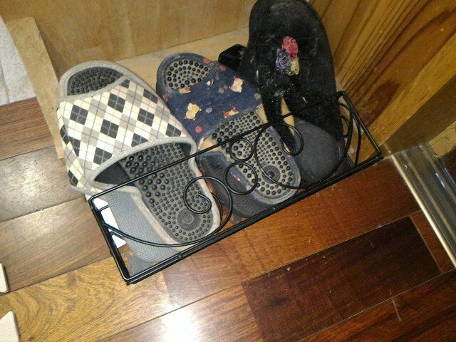 ちょこっと作業。玄関にスリッパが置いてあります。自作のスリッパ入れを水槽の棚に改造してから最低限のスリッパを こうしてあります(^_^;)この入れ物がまた 金属なんで足で蹴ると 痛い!結構な頻度で蹴っています。なので宙吊りにします(^_^;)水槽の棚の 側面にビスにひっかけて固定。これだけです。作業終了〜〜〜〜ちょっとした事ですけどこれができれば 玄関はかなり広くなった感じはしますよ(^o^)/いい仕事ができました。にほんブログ村 家族ブログにほんブログ村 家庭・家族にほんブログ村 ハンドメイドブログにほんブログ村 木工にほんブログ村 車 修理・整備にほんブログ村 自作PCにほんブログ村