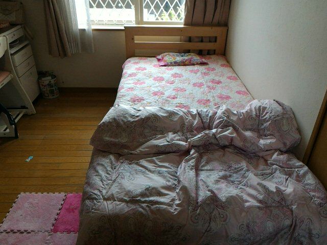 釣りから帰って竿を洗い早速作業です。先日 長女の誕生日で実家の母が ベットを買って注文していたのです。今日到着していますので組み立てです。とりあえず部屋の掃除と家具の移動。これまで部屋のサイズにピッタリで物を用意してきたんで既成品だと収まりが悪くなります。仕方ないですね(-_-;)とりあえず組み立てます。といっても簡単ですけど。あっというまにシーツまで張りました。部屋がかなり狭くなった(^_^;)インパクトレンチで組んだんで すぐにできましたよ。今夜から一人で寝れるかな?にほんブログ村 家族ブログにほんブログ村 家庭・家族にほんブログ村 ハンドメイドブログにほんブログ村 木工にほんブログ村 車 修理・整備にほんブログ村 自作PCにほんブログ村