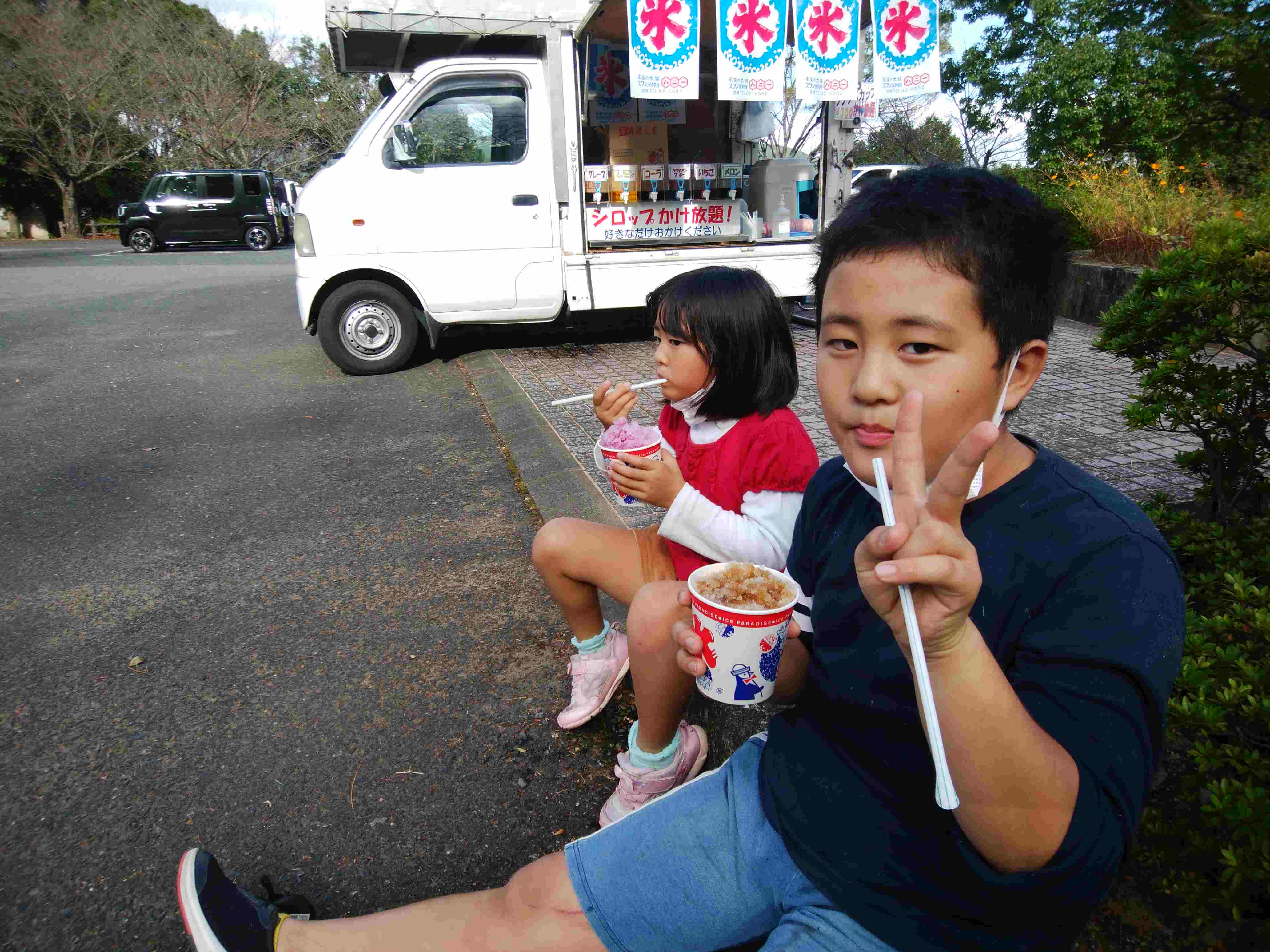 珍しく駐車場にかき氷屋さんが来てたんで