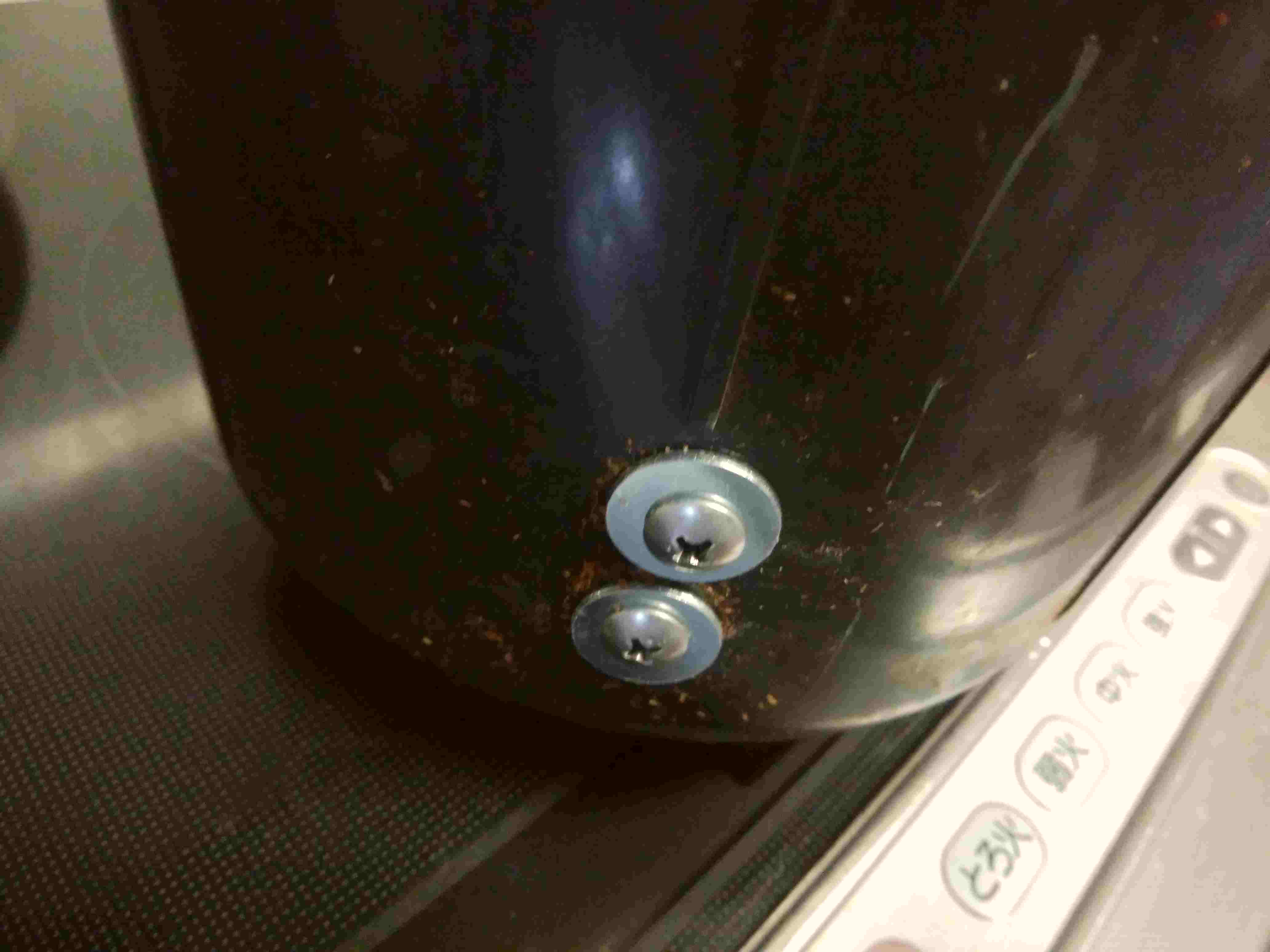 中のカッターが取れて穴が開いているところに